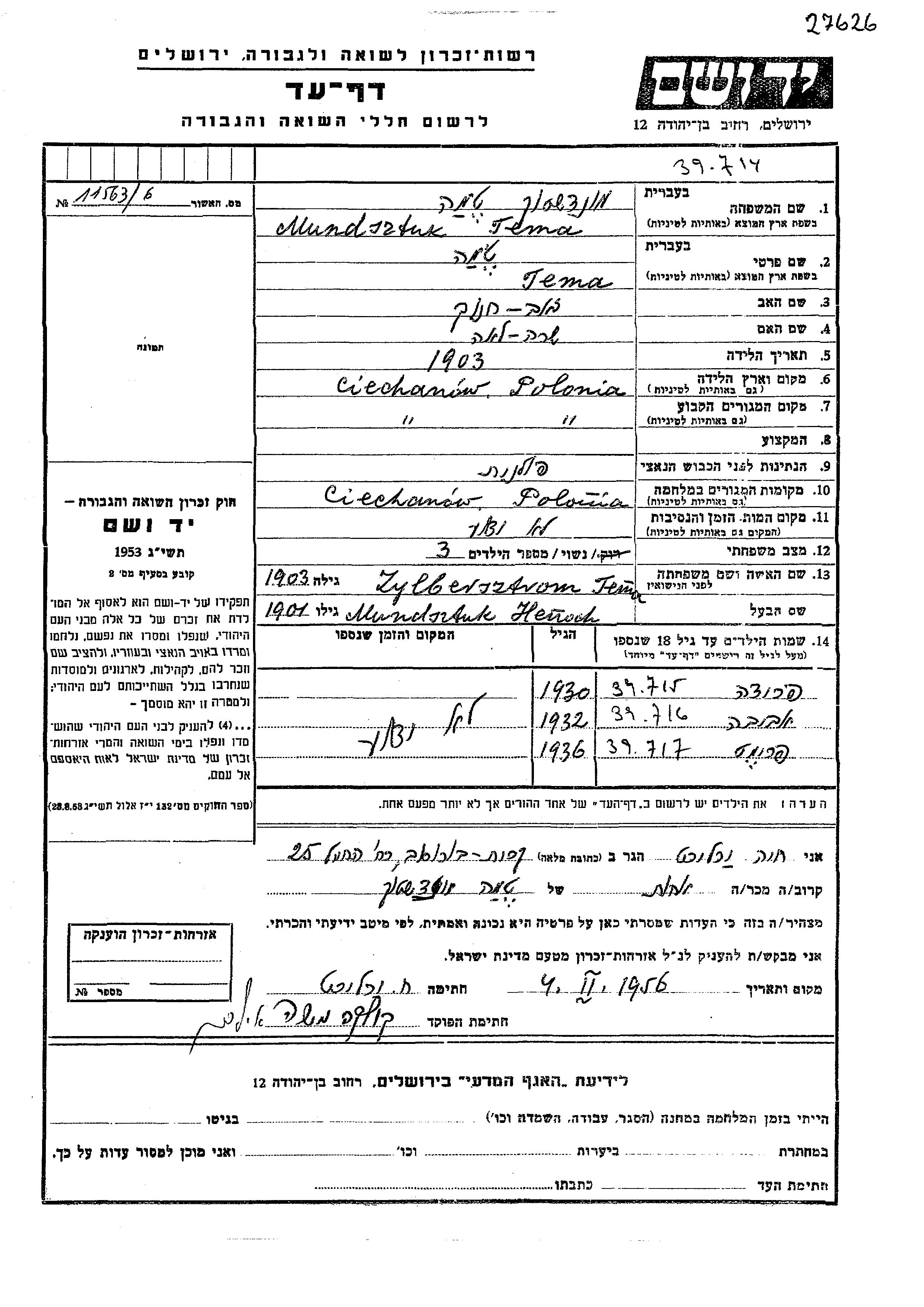Yad Vashem - Pages of Testimony Names Memorial Collection