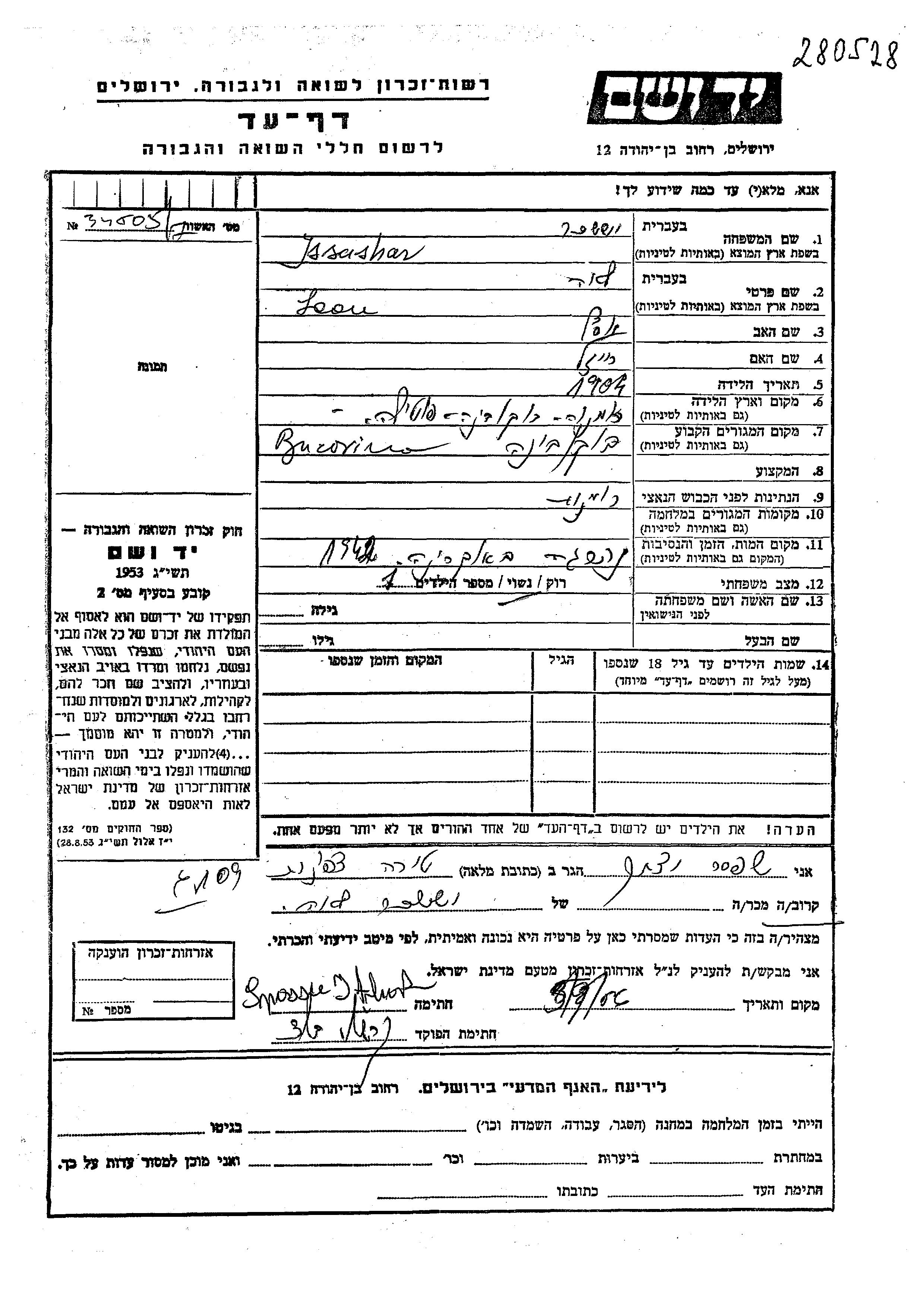 Yad Vashem - Pages of Testimony Names Memorial Collection