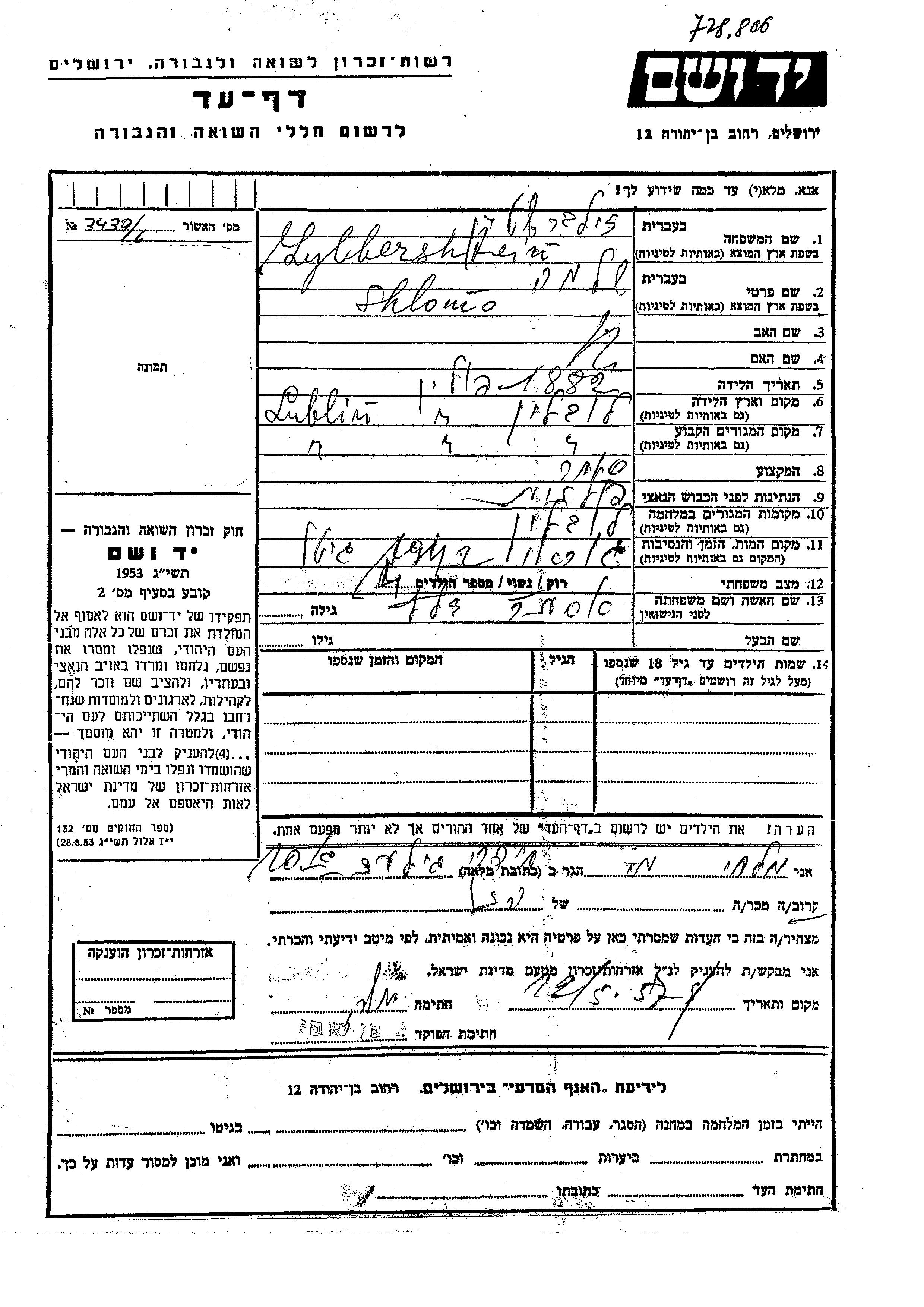 Zilbershtein Shlomo 1882 endroit inconnu, Feuille de témoignage