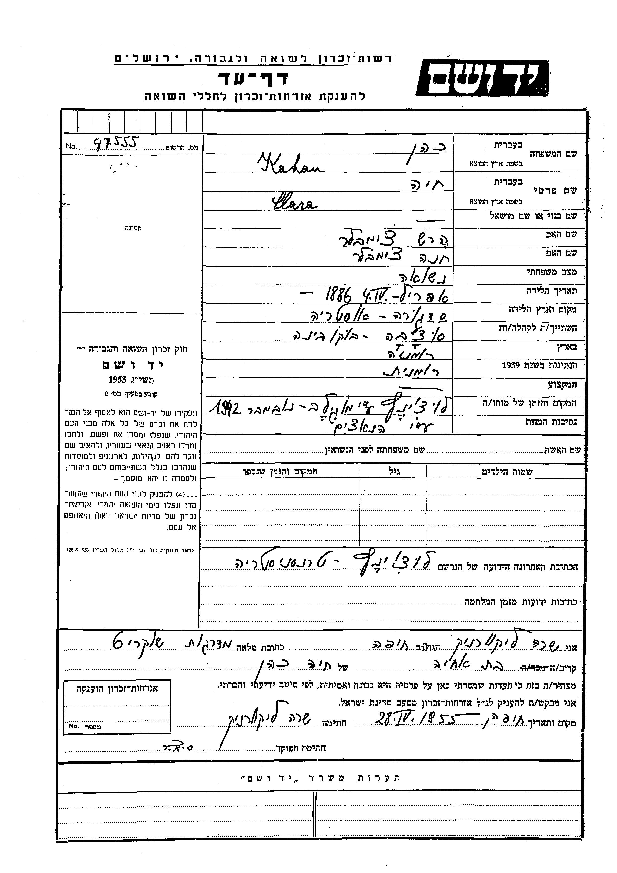Yad Vashem - Pages of Testimony Names Memorial Collection