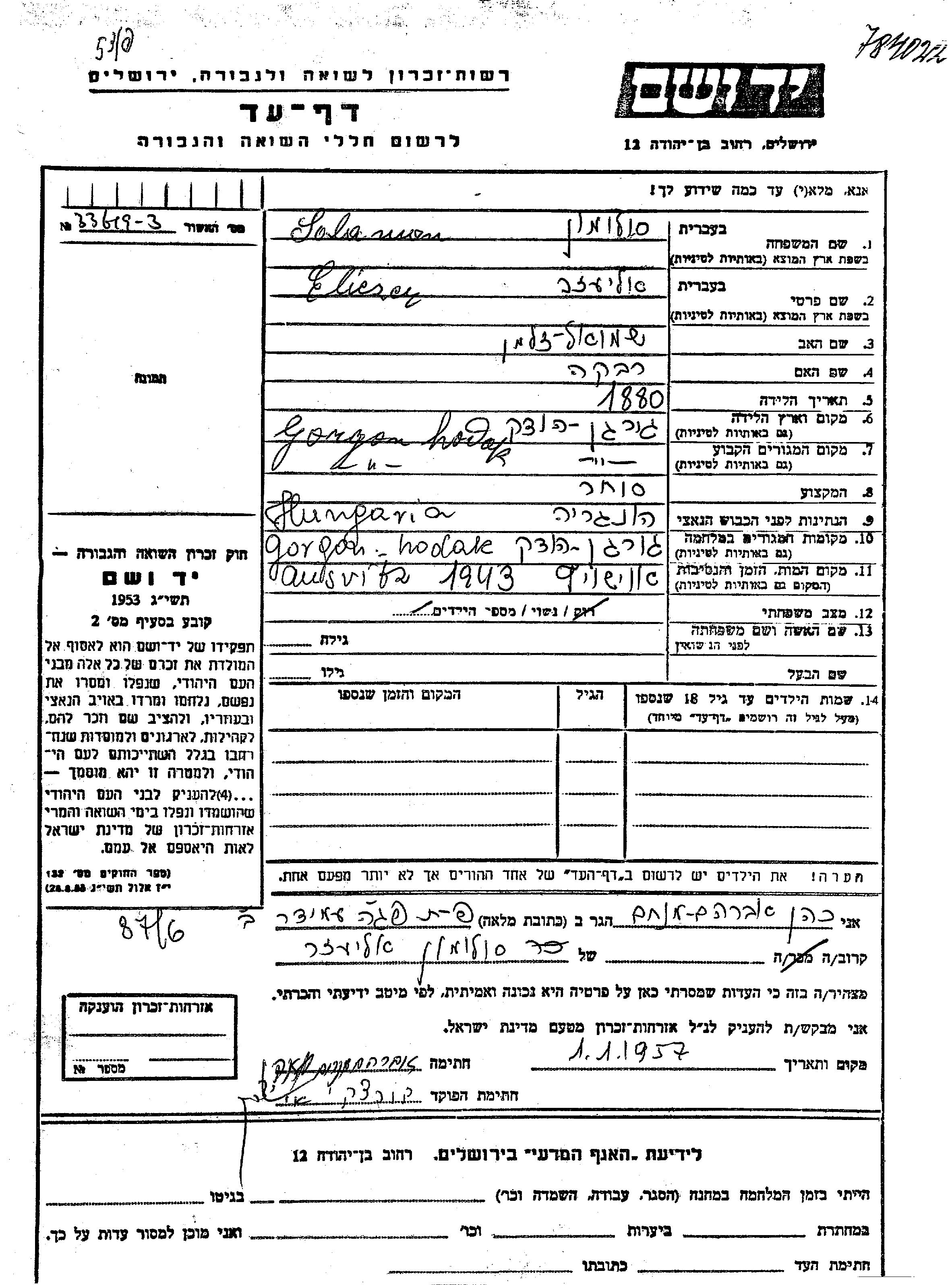 Yad Vashem - Pages of Testimony Names Memorial Collection
