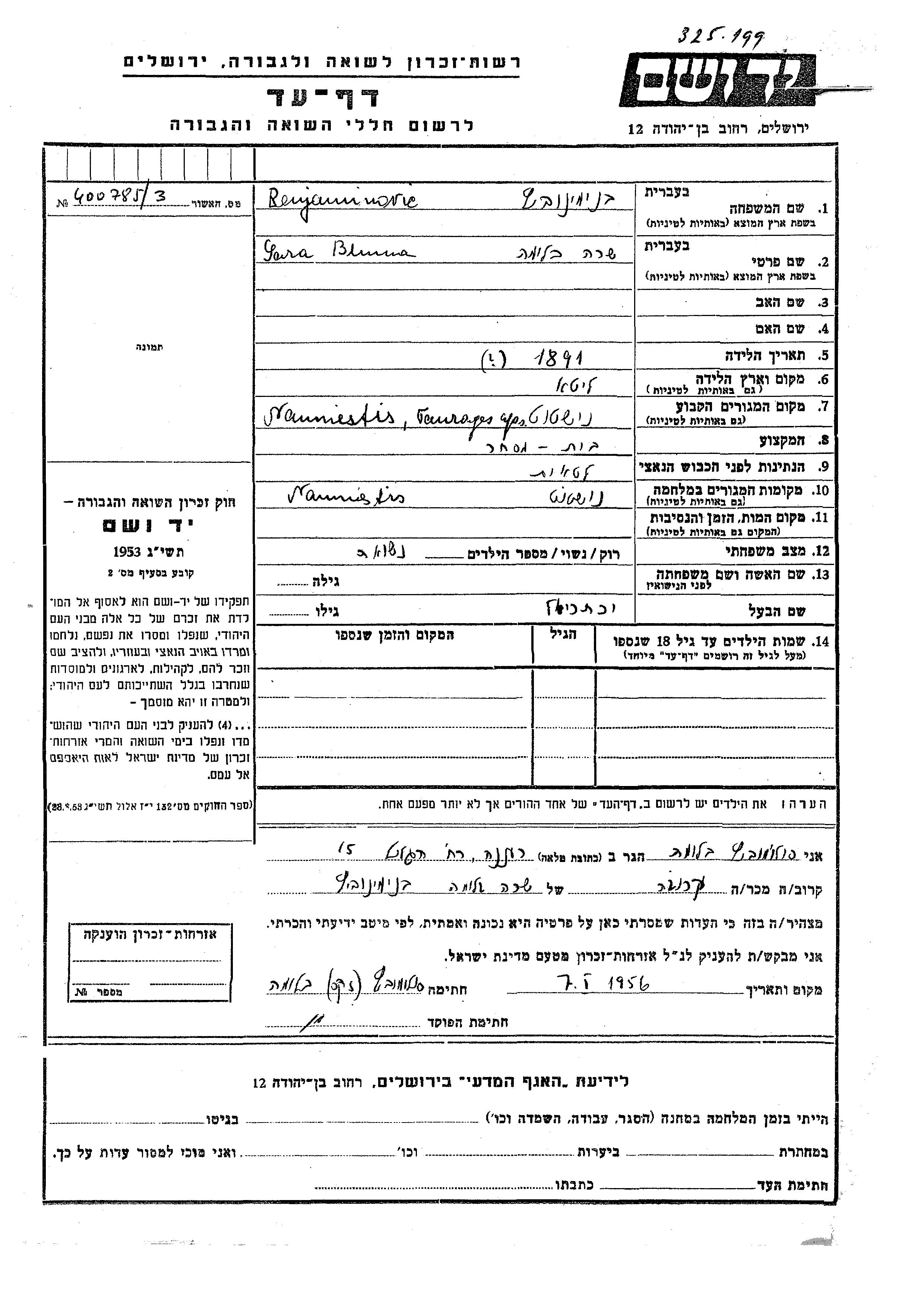Yad Vashem - Pages of Testimony Names Memorial Collection
