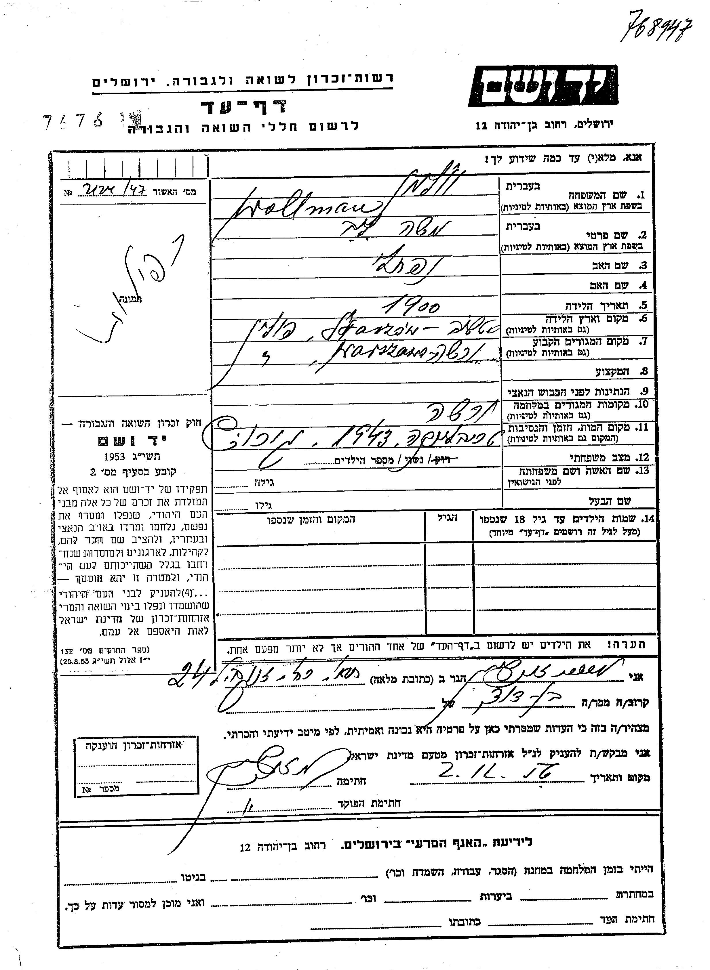Yad Vashem - Pages of Testimony Names Memorial Collection