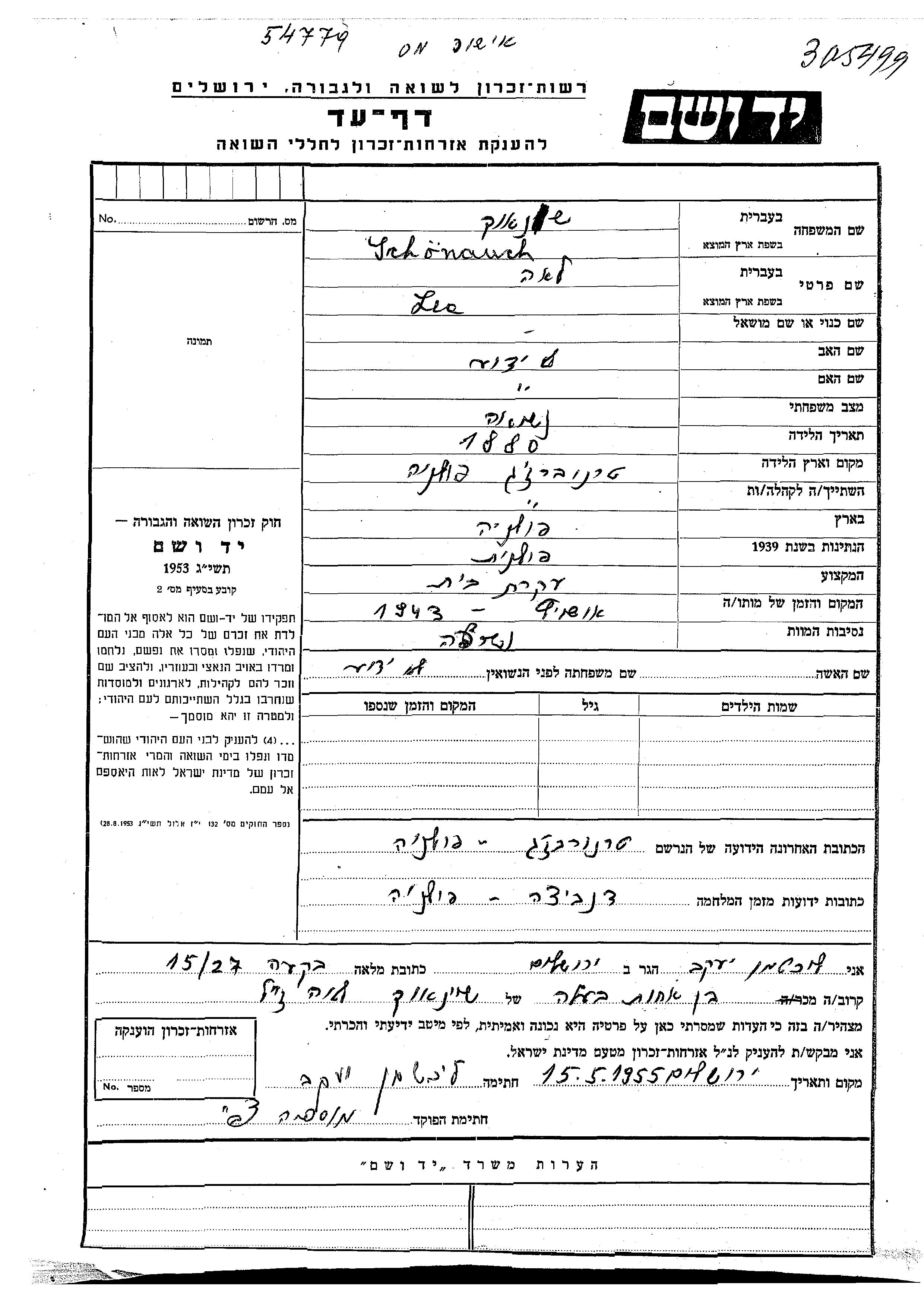 Yad Vashem - Pages of Testimony Names Memorial Collection