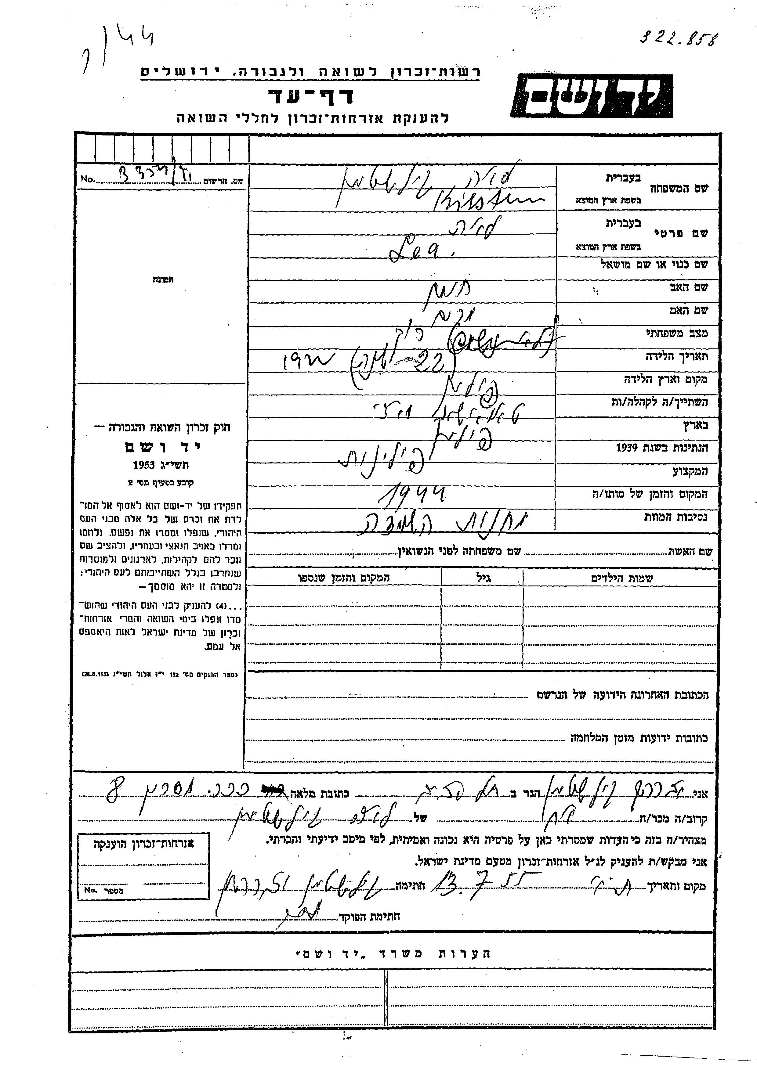 Yad Vashem - Pages of Testimony Names Memorial Collection