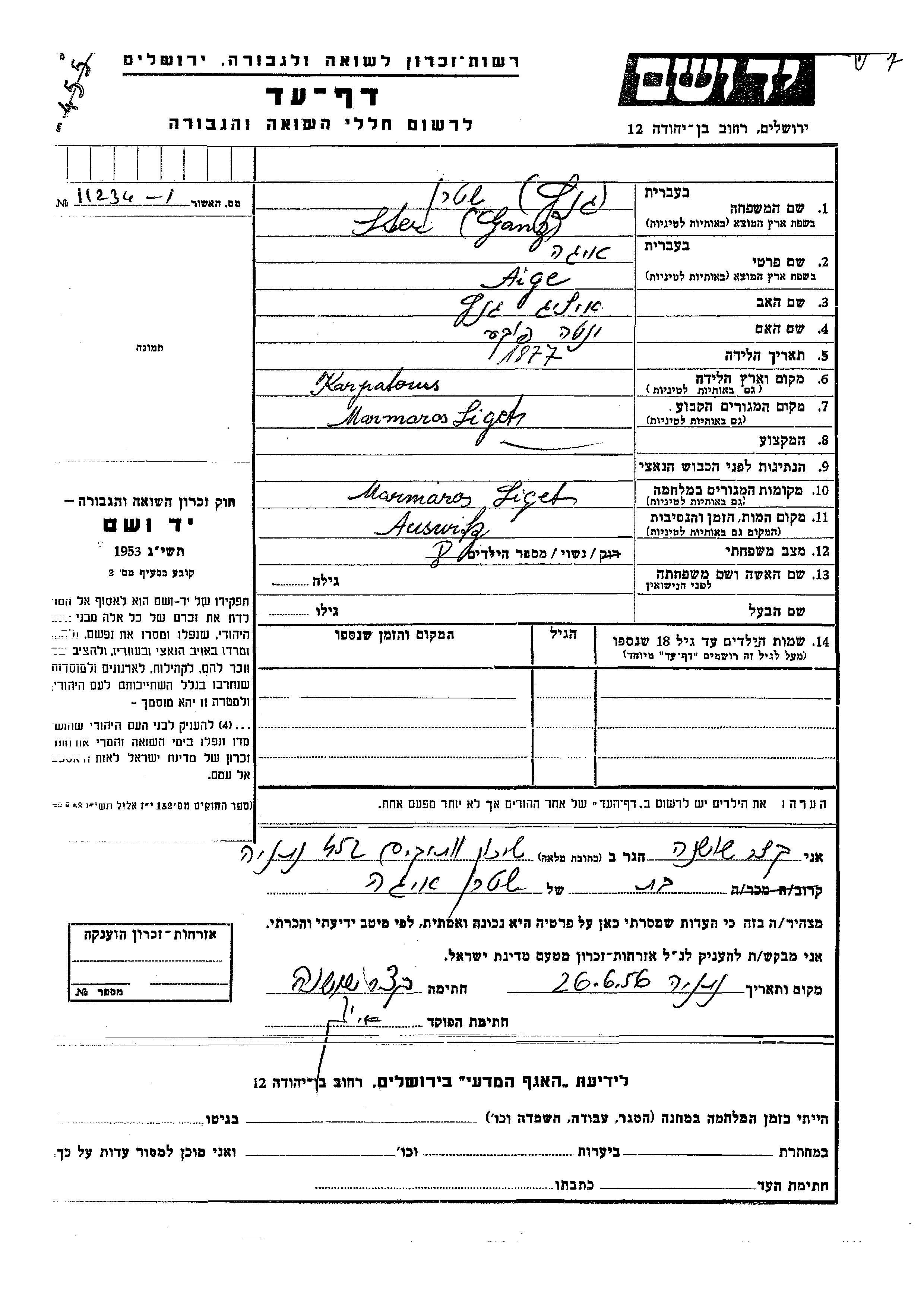 Yad Vashem - Pages of Testimony Names Memorial Collection
