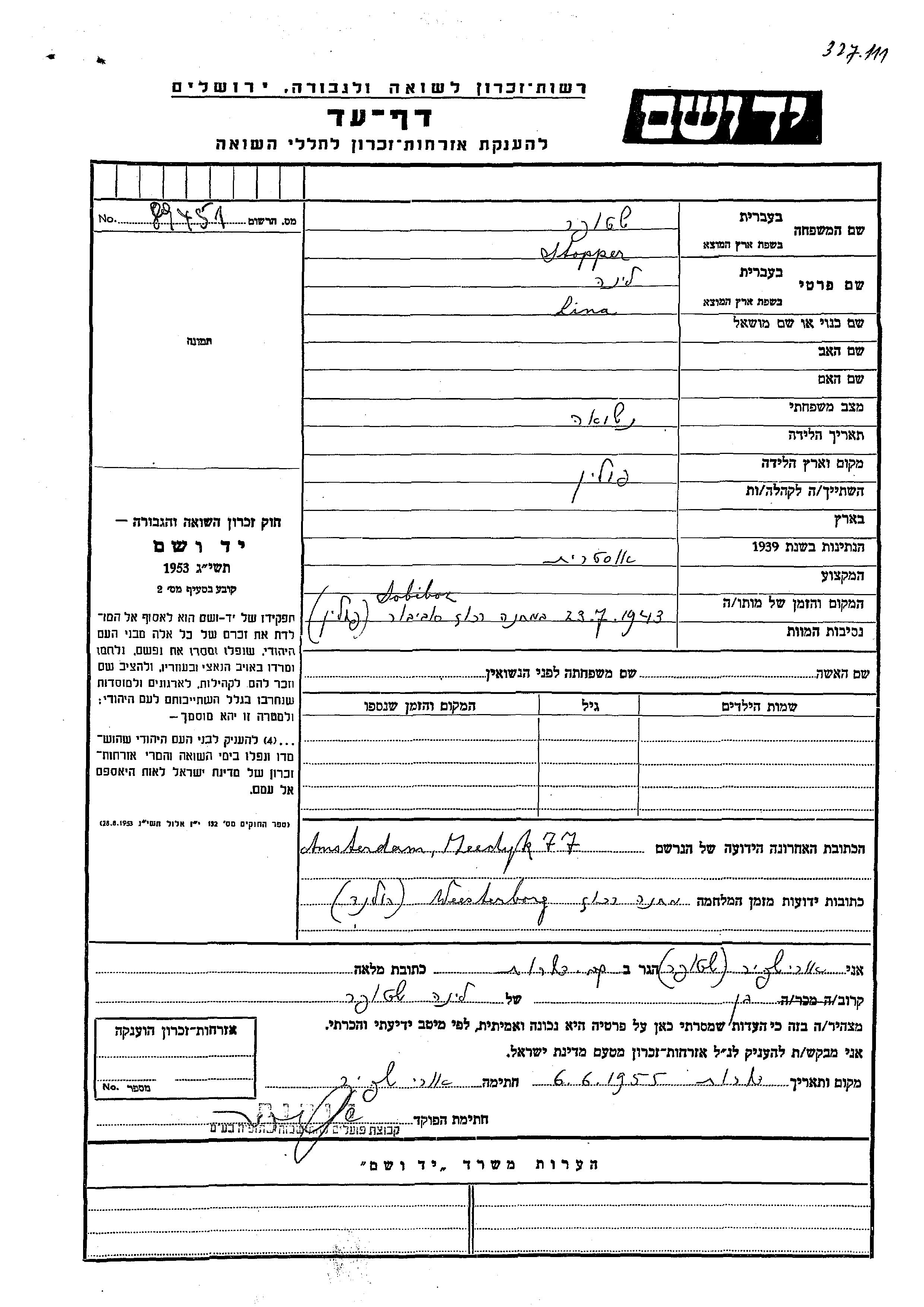 Yad Vashem - Pages of Testimony Names Memorial Collection