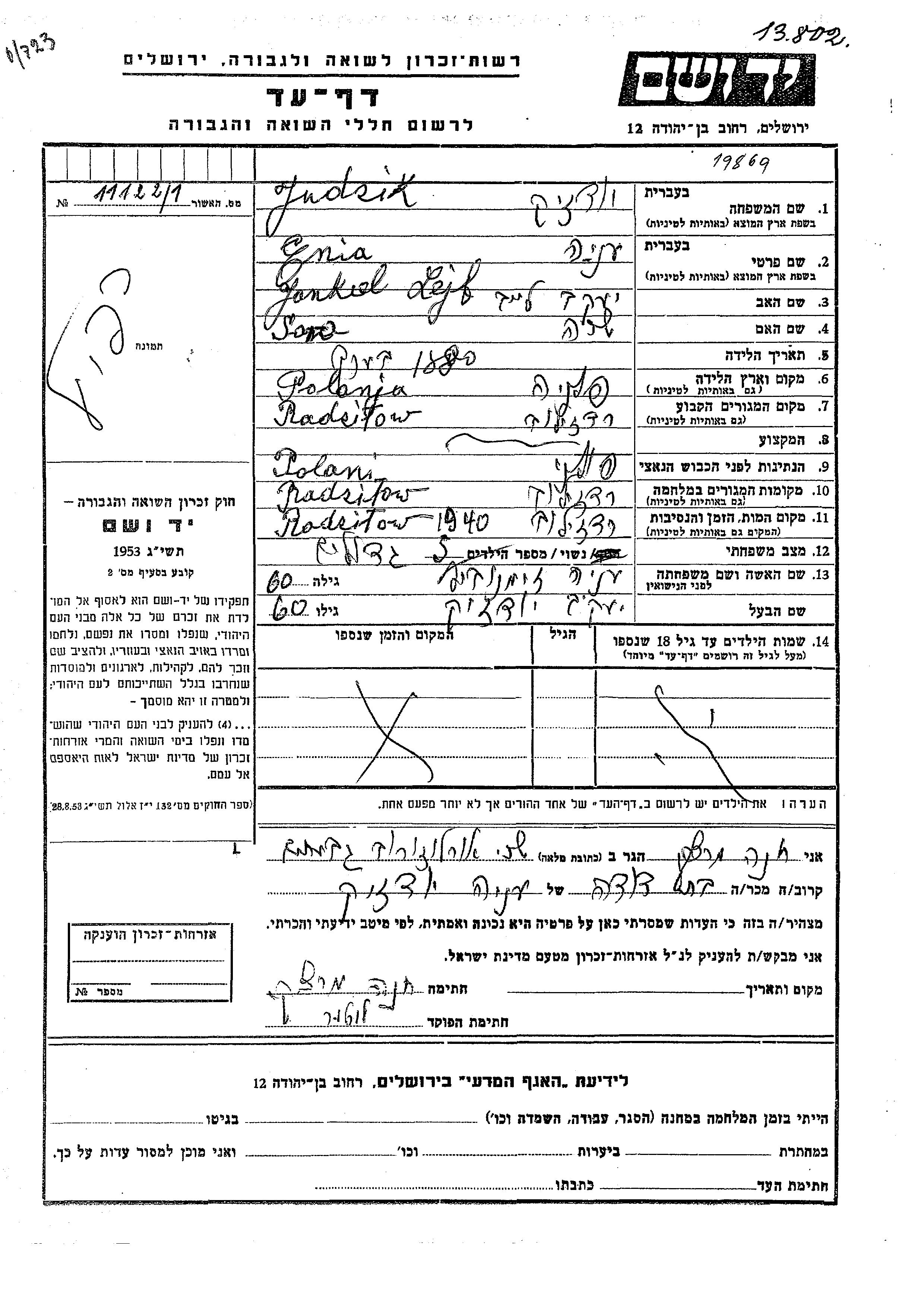 Yad Vashem - Pages of Testimony Names Memorial Collection