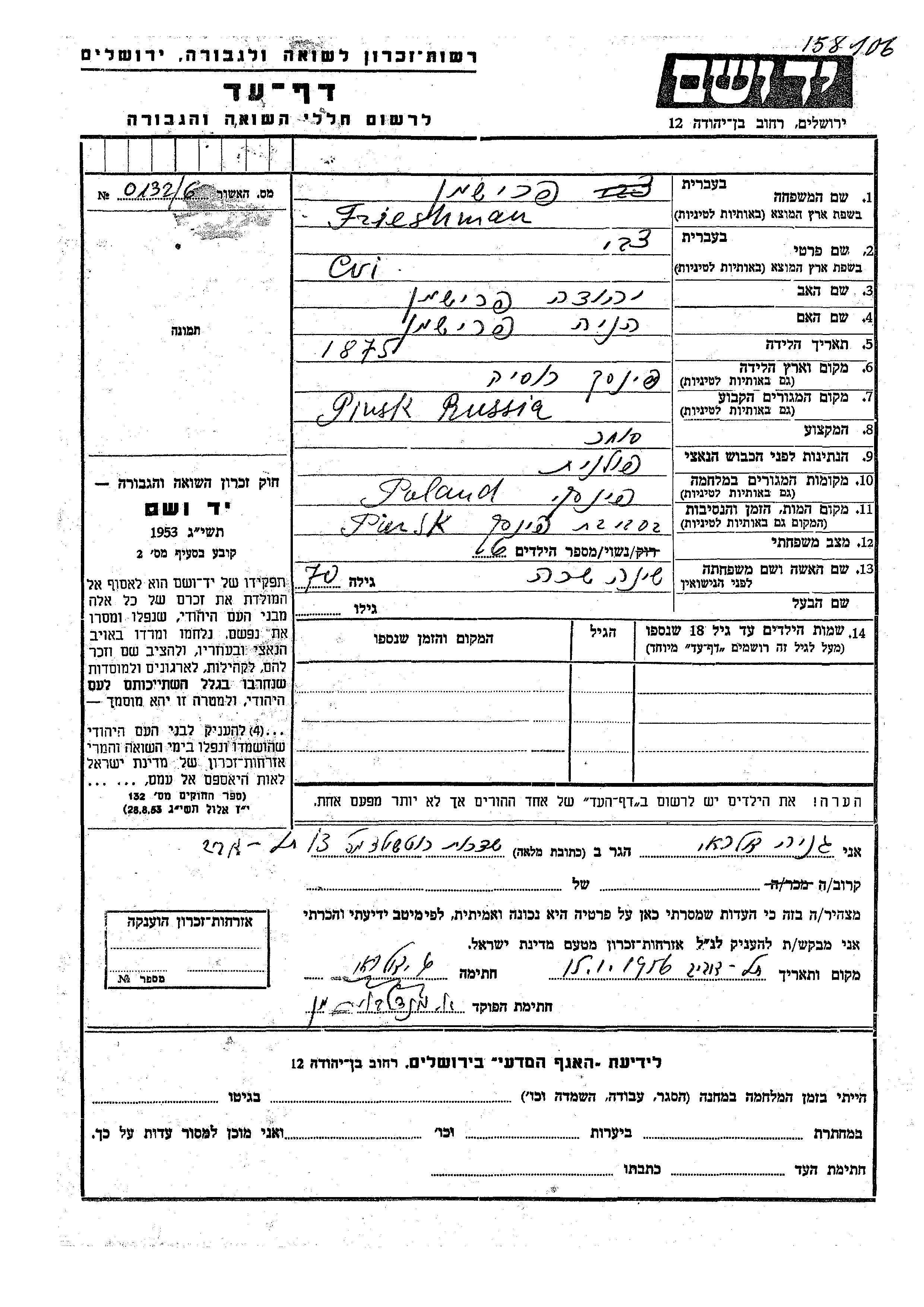 Cwi a été assassiné pendant la Shoah. Lieu de la mort: Pinsk, Pologne.