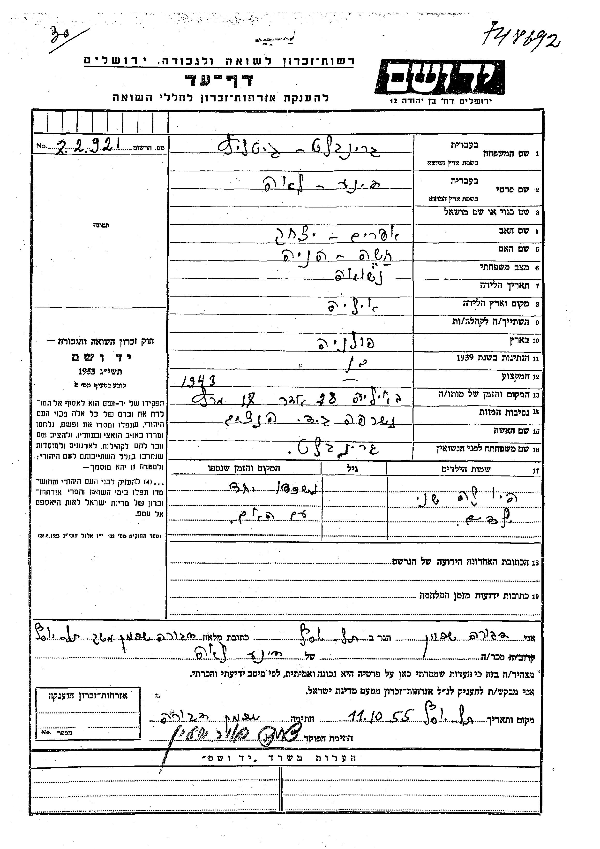 Yad Vashem - Pages of Testimony Names Memorial Collection