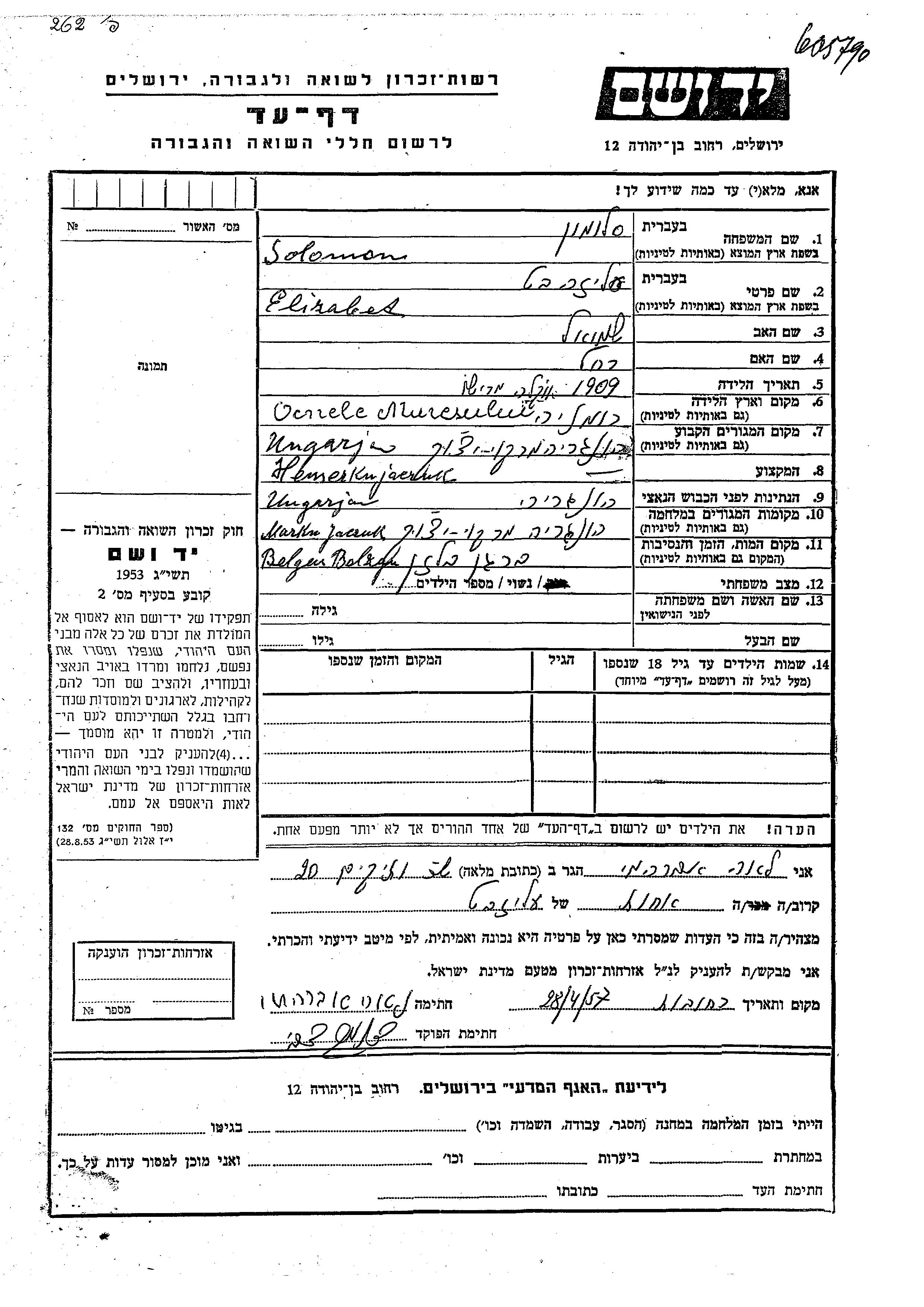Yad Vashem - Pages of Testimony Names Memorial Collection