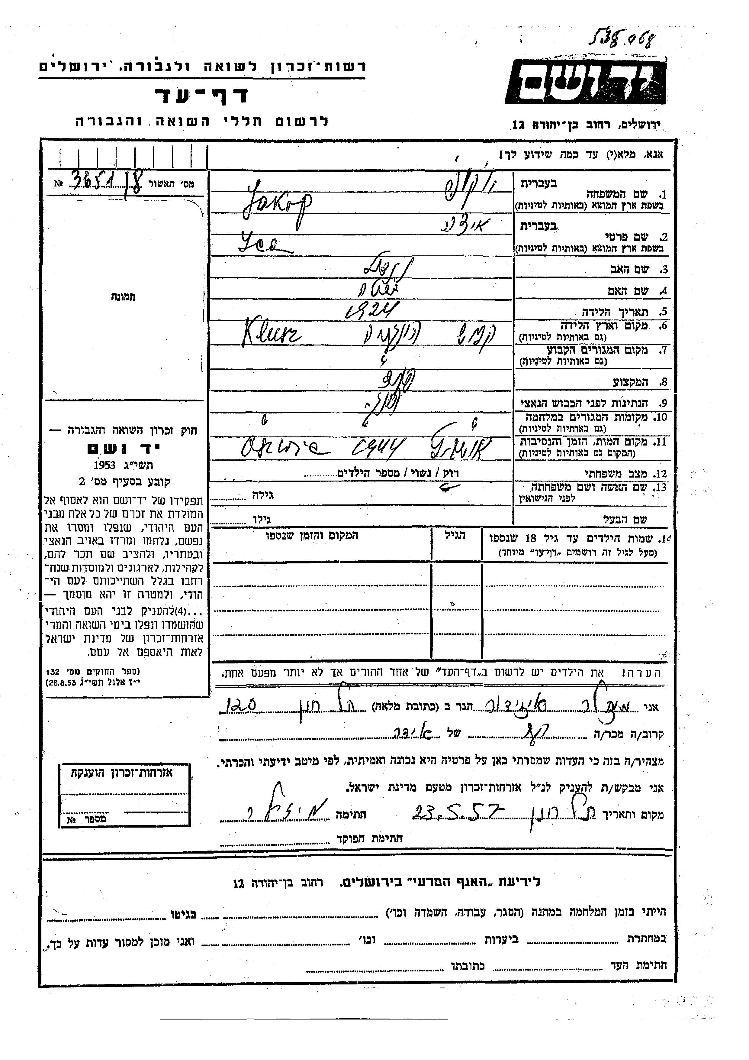 Yad Vashem - Pages of Testimony Names Memorial Collection
