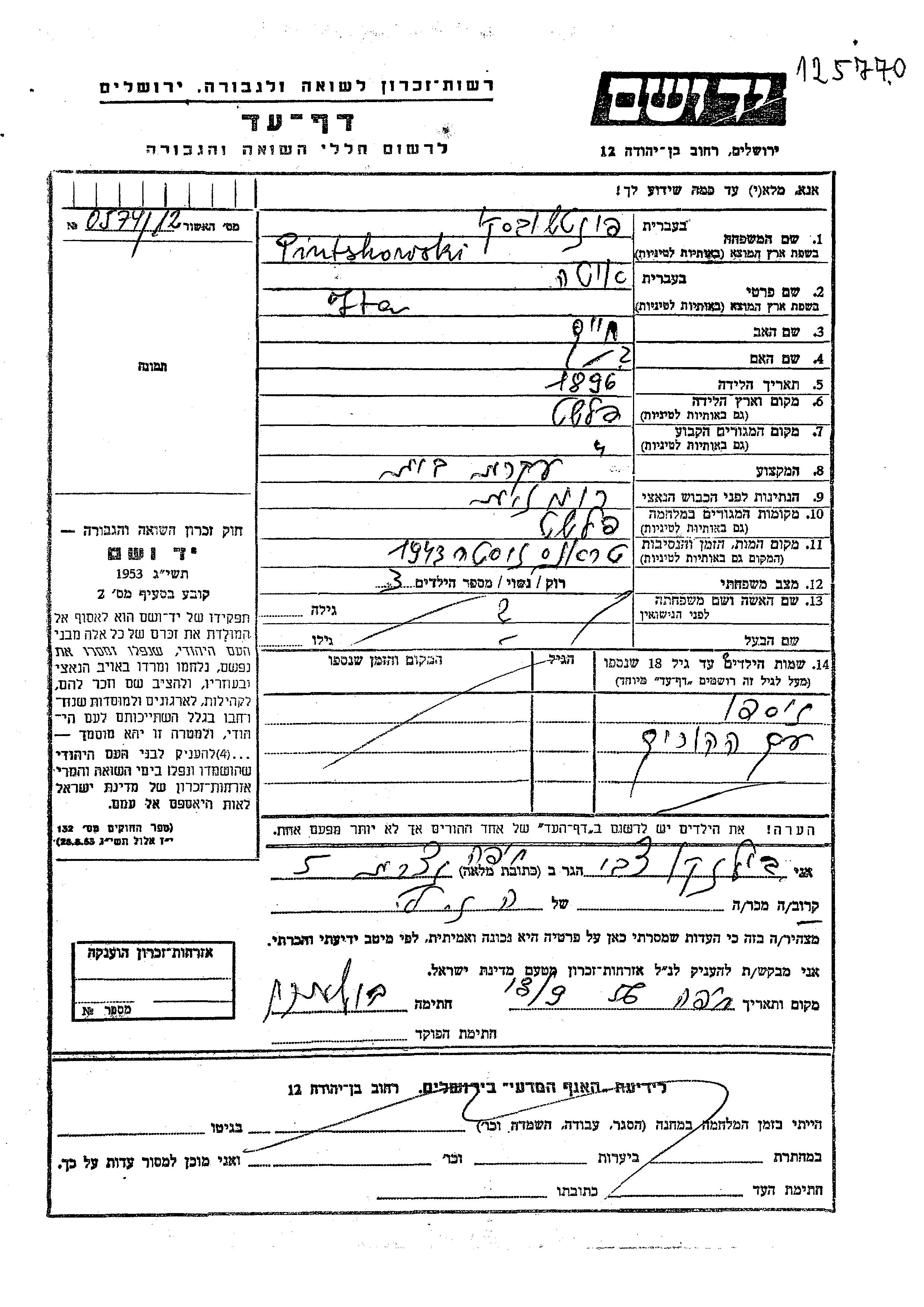 Yad Vashem - Pages of Testimony Names Memorial Collection