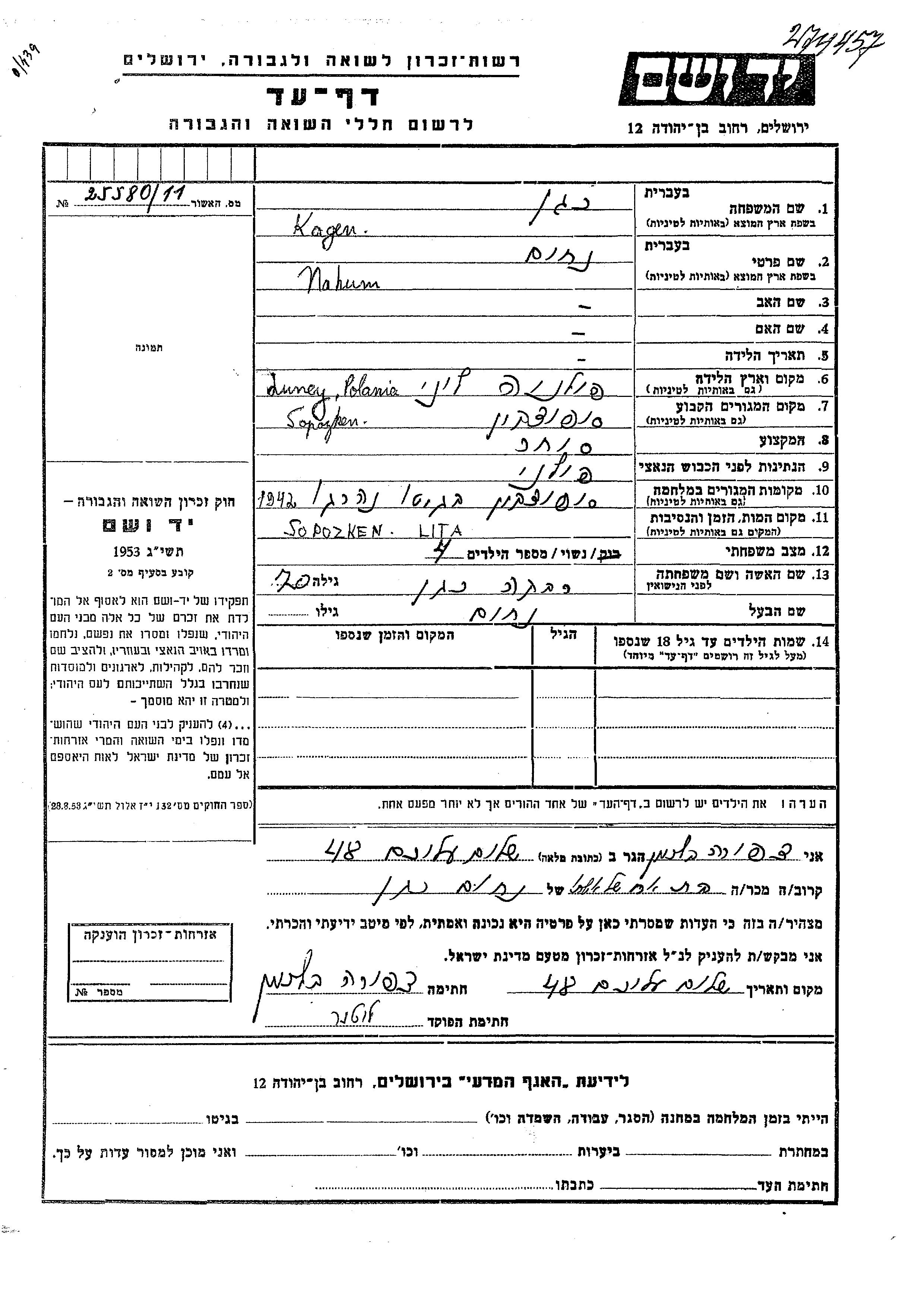 Yad Vashem - Pages of Testimony Names Memorial Collection