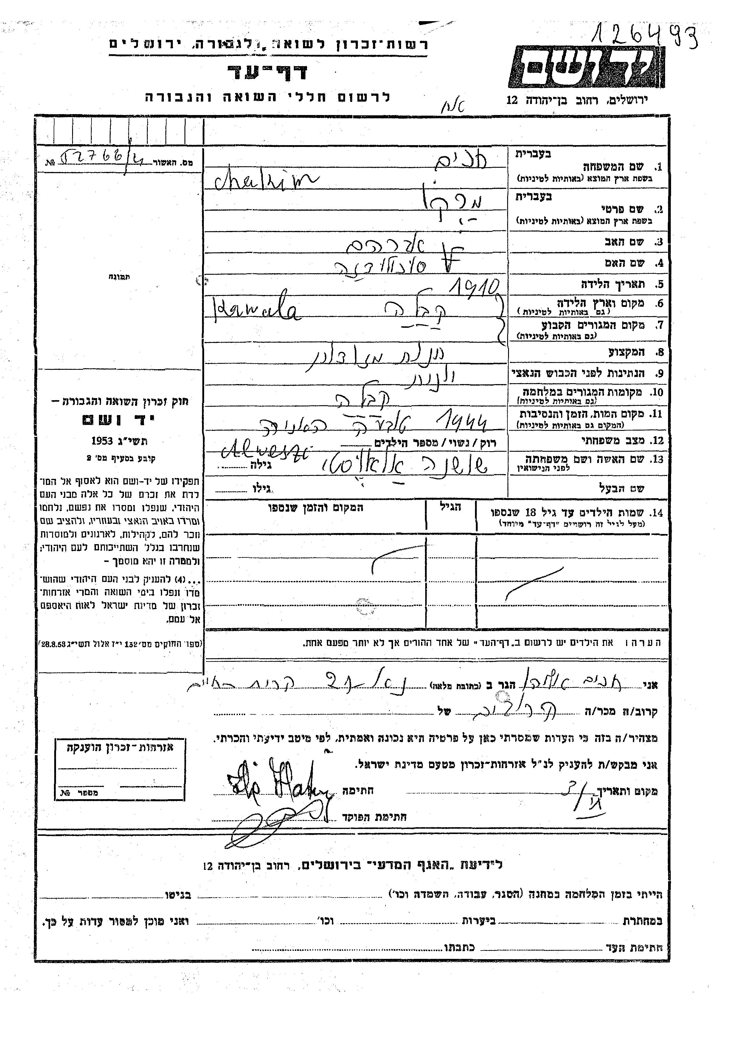 Yad Vashem - Pages of Testimony Names Memorial Collection