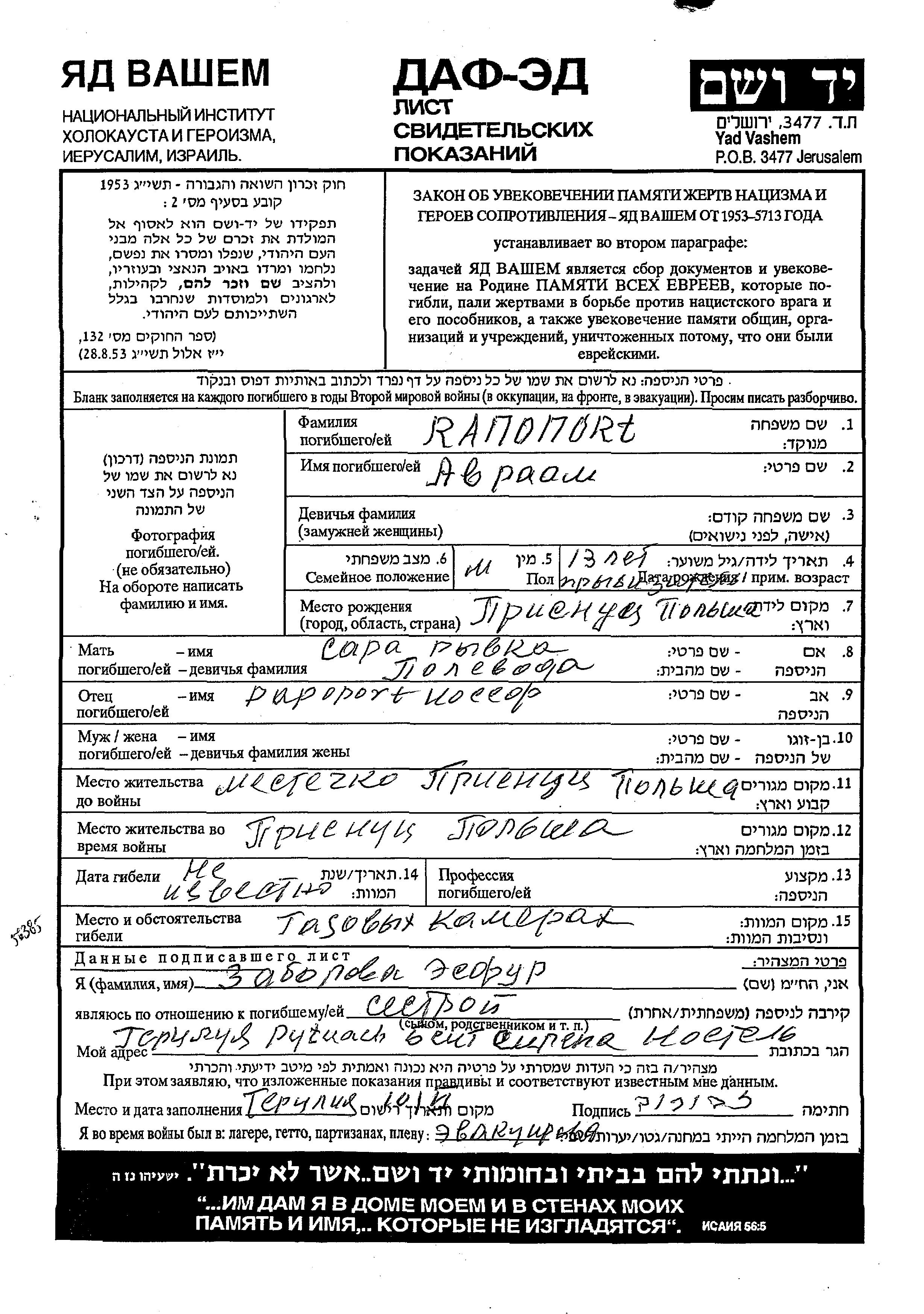 Recherche par nom du dépositeur de la Feuille de témoignage. Cette recherché indique aussi les noms de jeunes filles.