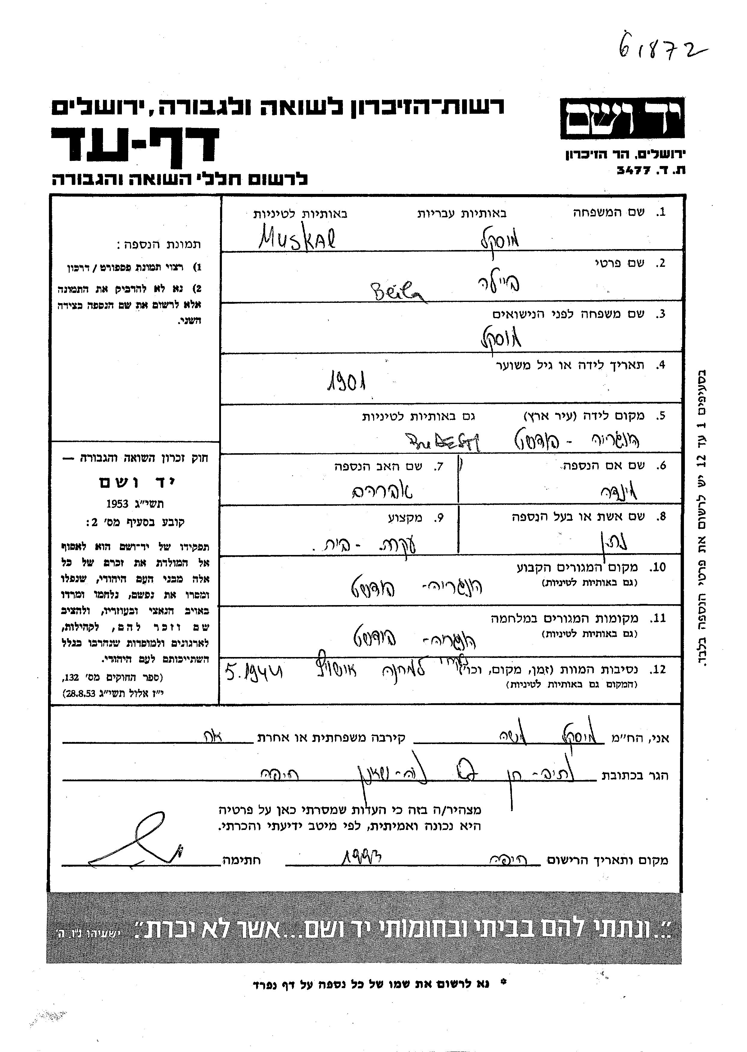 Yad Vashem - Pages of Testimony Names Memorial Collection