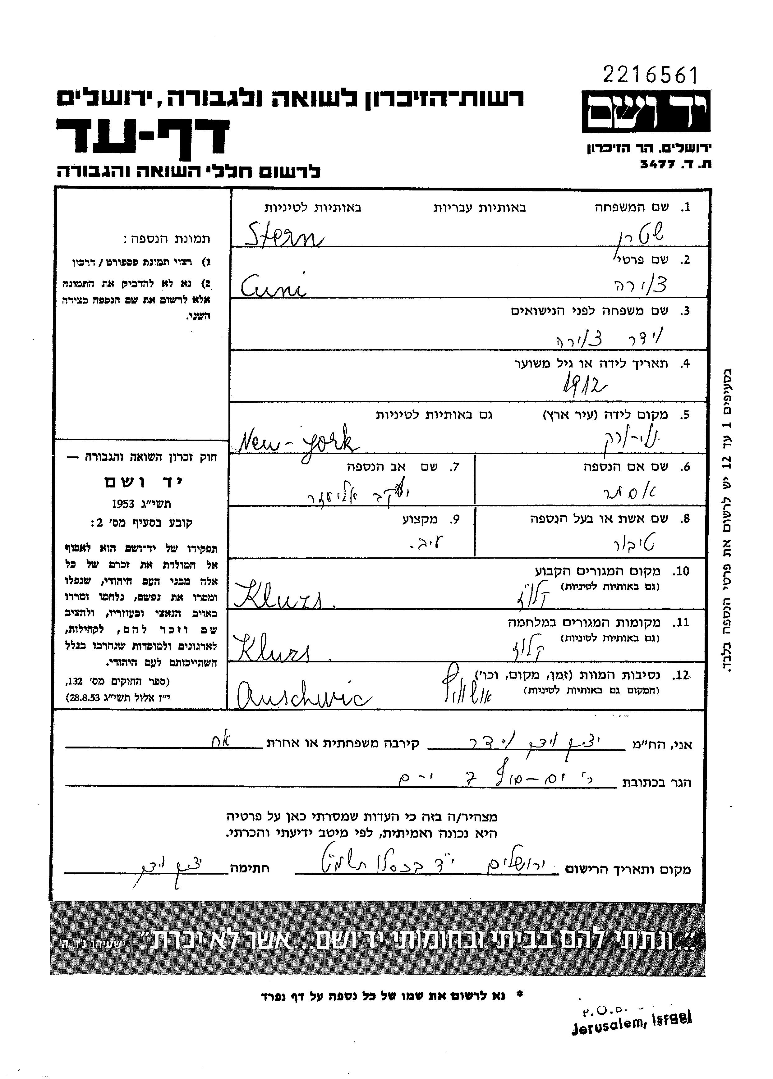 Yad Vashem - Pages of Testimony Names Memorial Collection