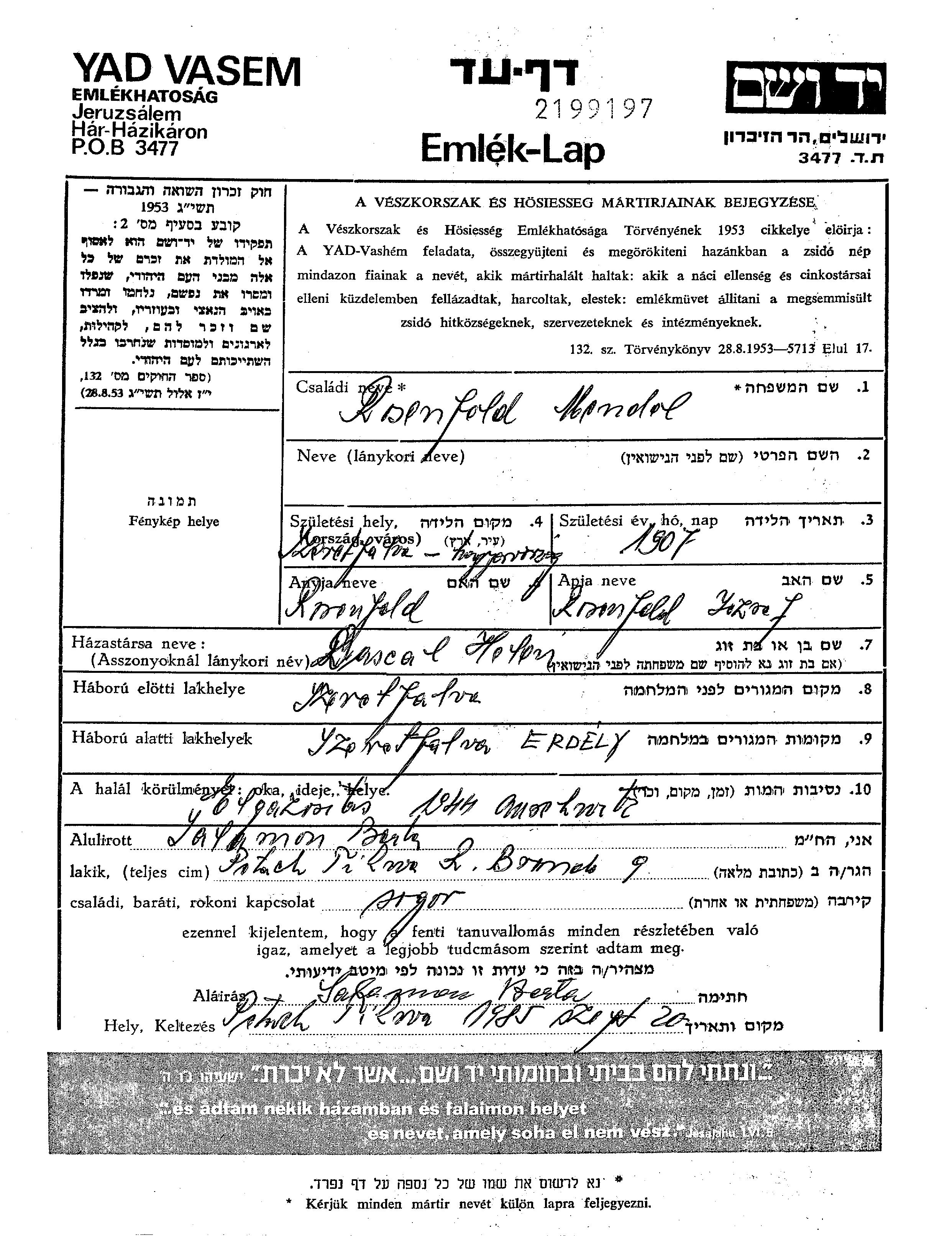 Yad Vashem - Pages of Testimony Names Memorial Collection
