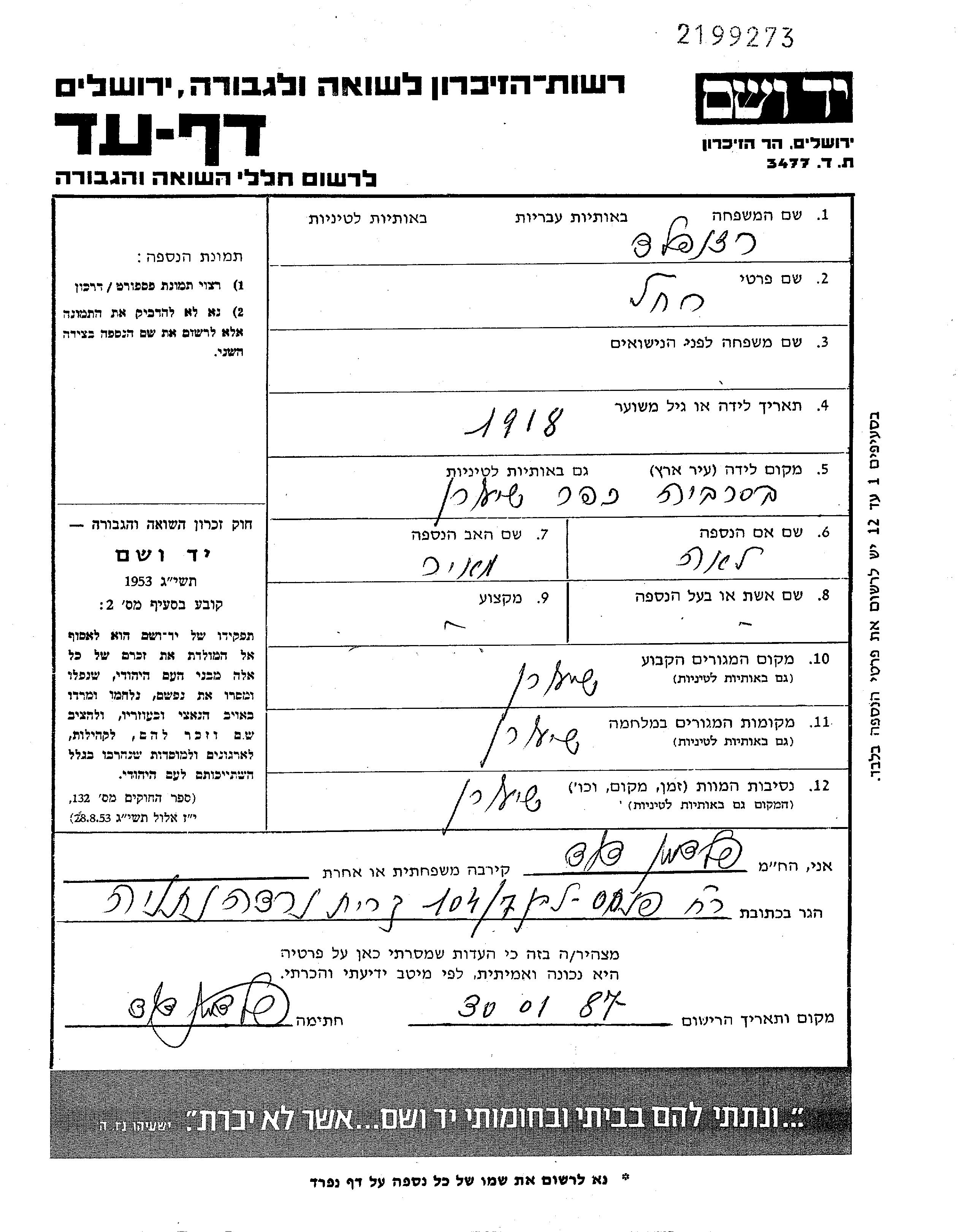 Yad Vashem - Pages of Testimony Names Memorial Collection