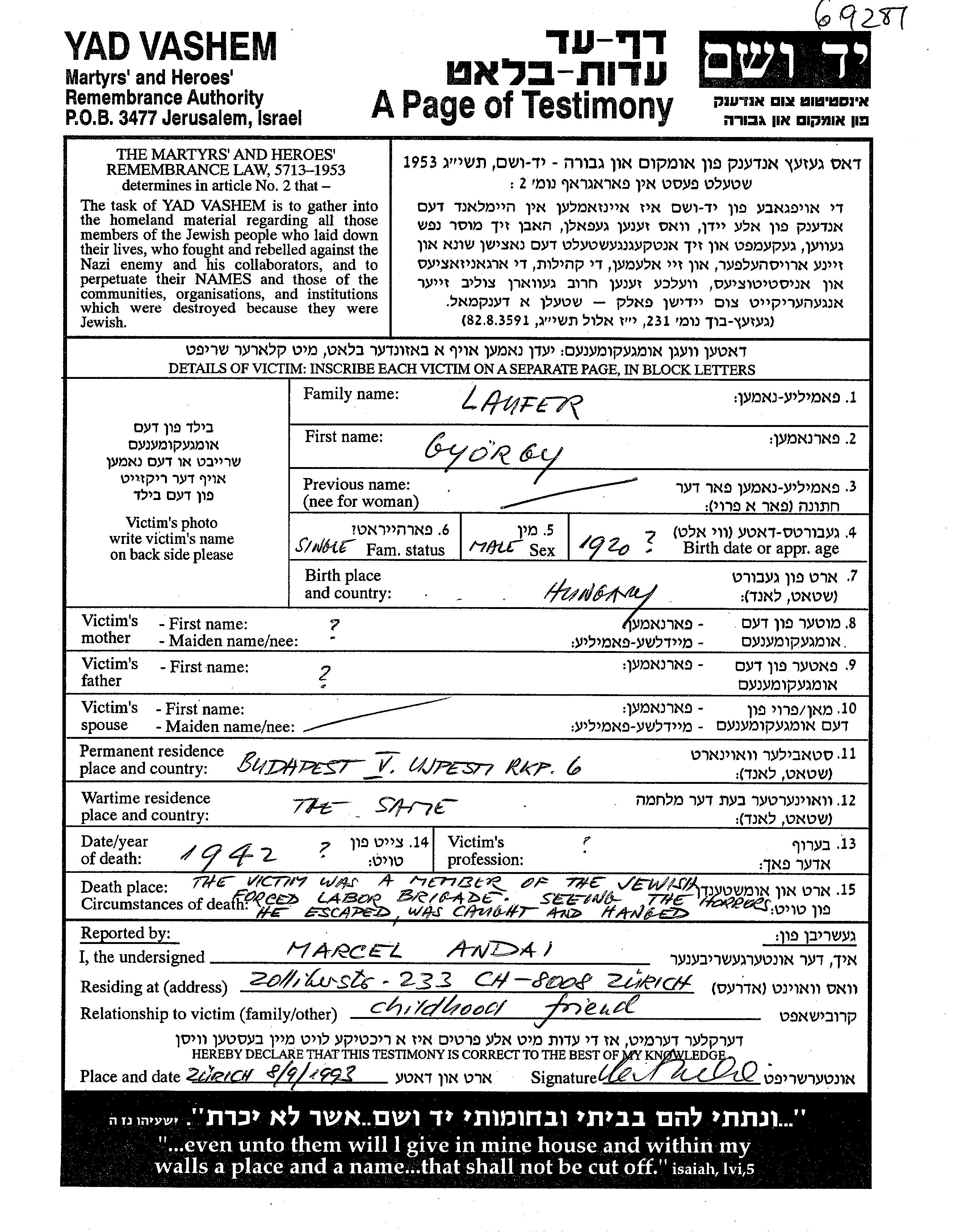 Recherche par lieu de résidence permanente avant la Shoah, ville, village, département, région ou pays.