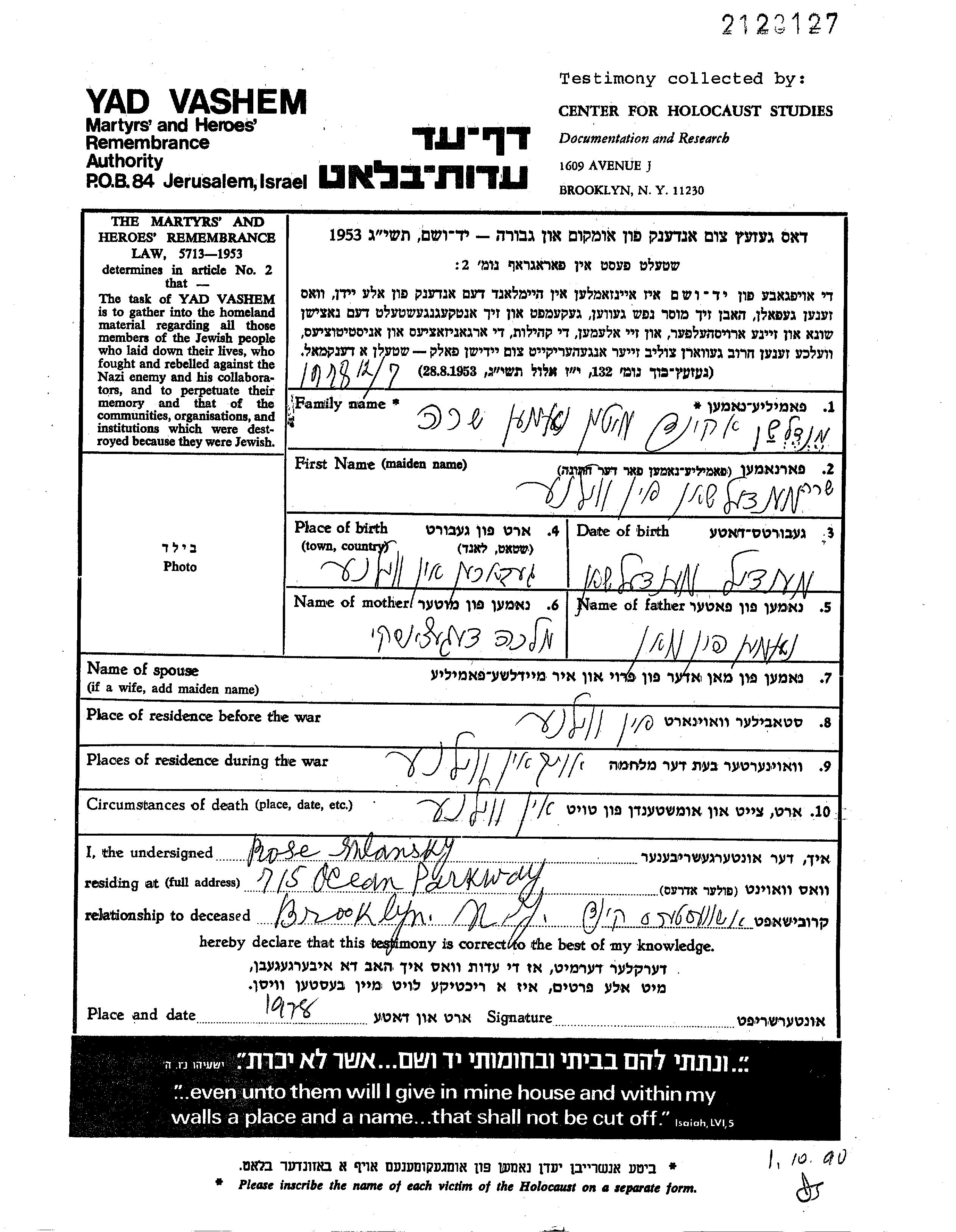 Yad Vashem - Pages of Testimony Names Memorial Collection