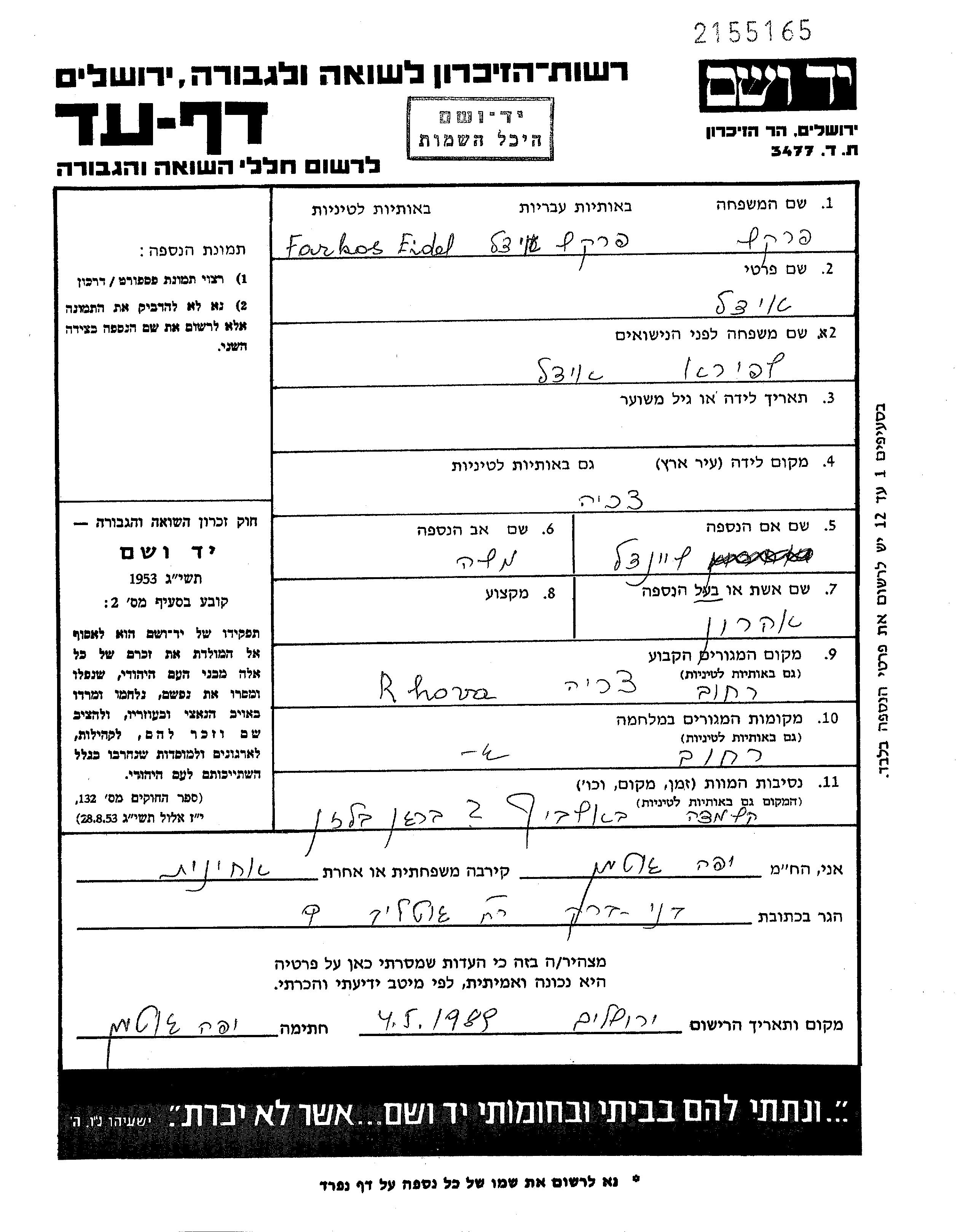 Yad Vashem - Pages of Testimony Names Memorial Collection