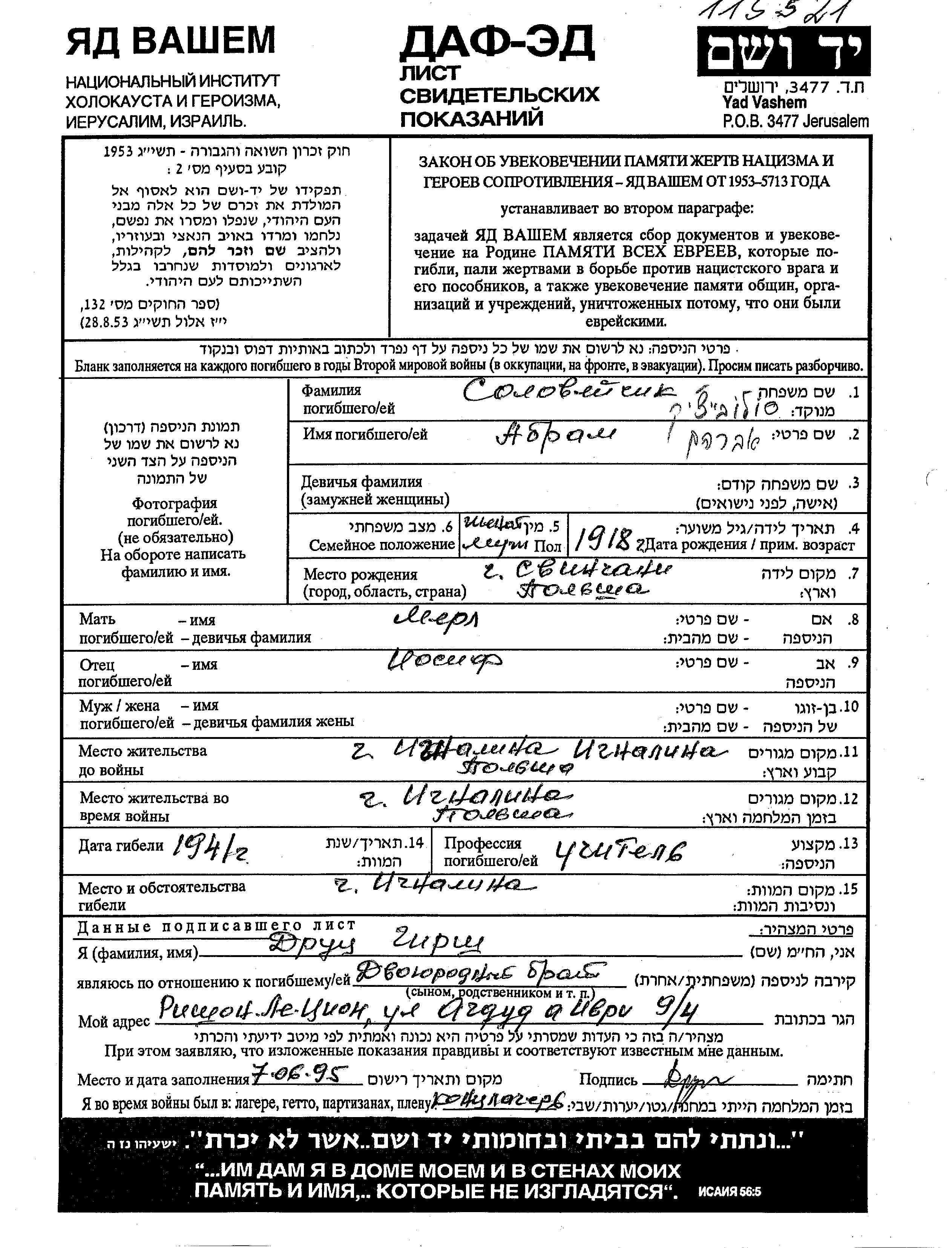 Recherche par nom du dépositeur de la Feuille de témoignage. Cette recherché indique aussi les noms de jeunes filles.