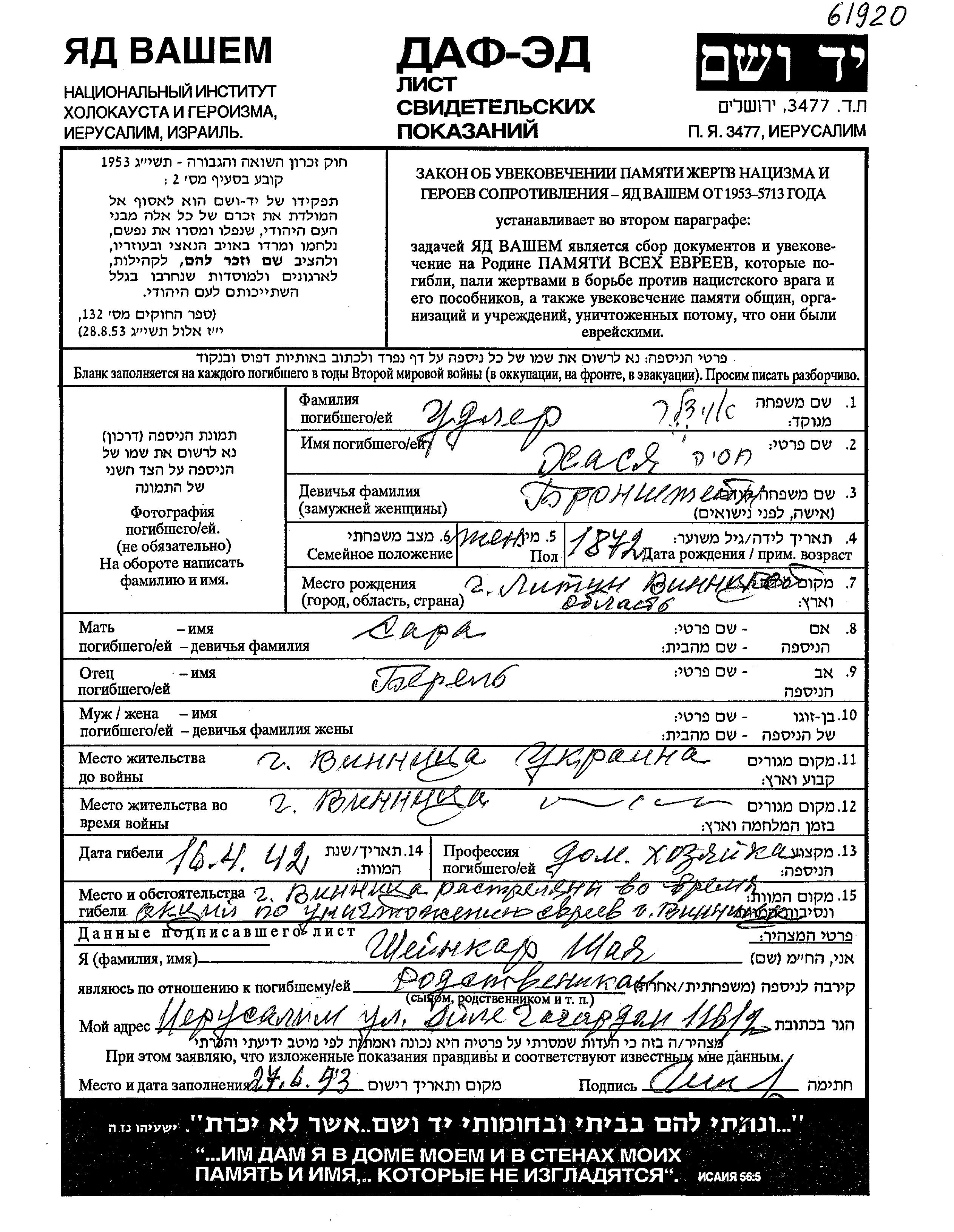 Yad Vashem - Pages of Testimony Names Memorial Collection