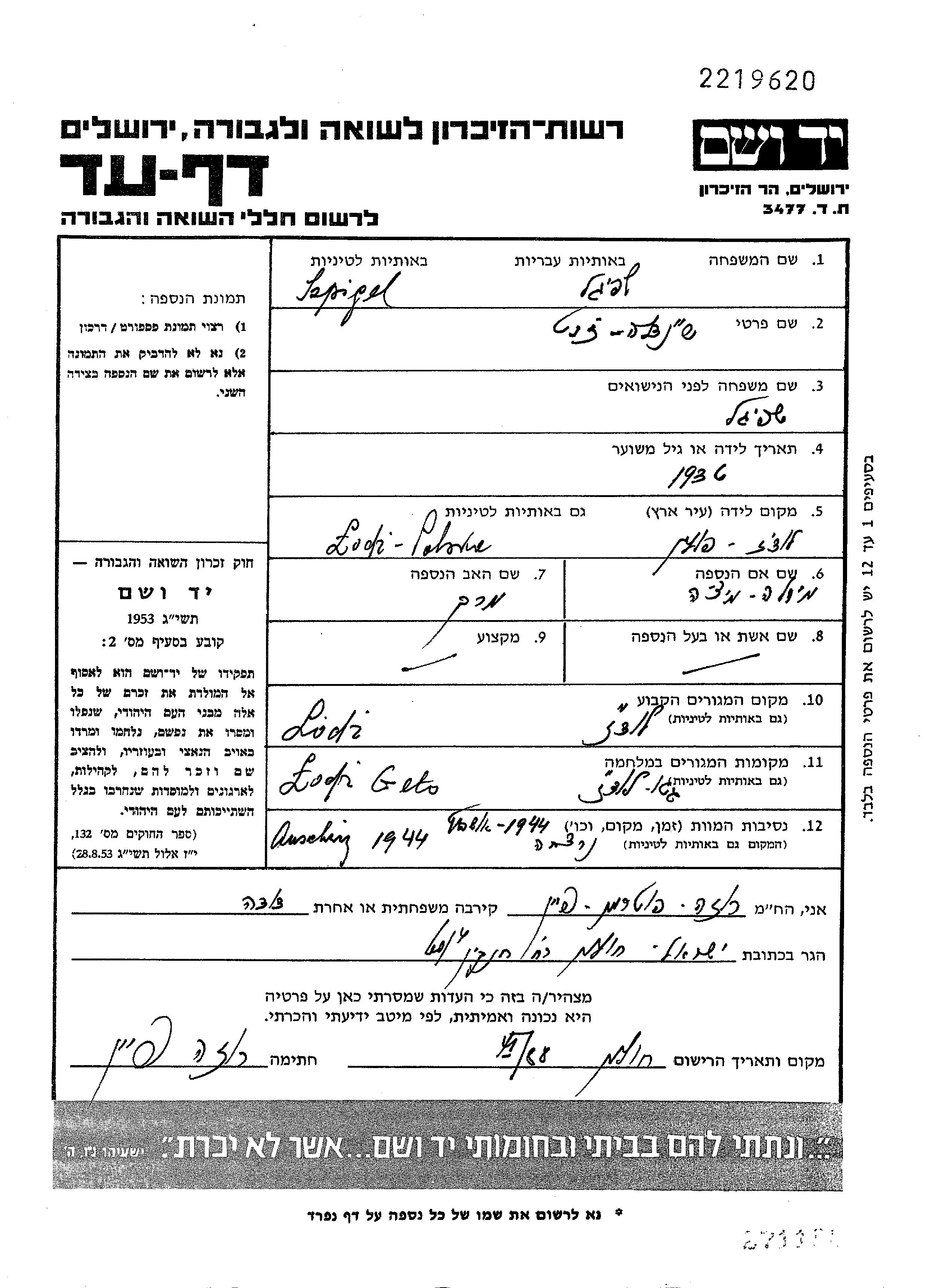 Yad Vashem - Pages of Testimony Names Memorial Collection
