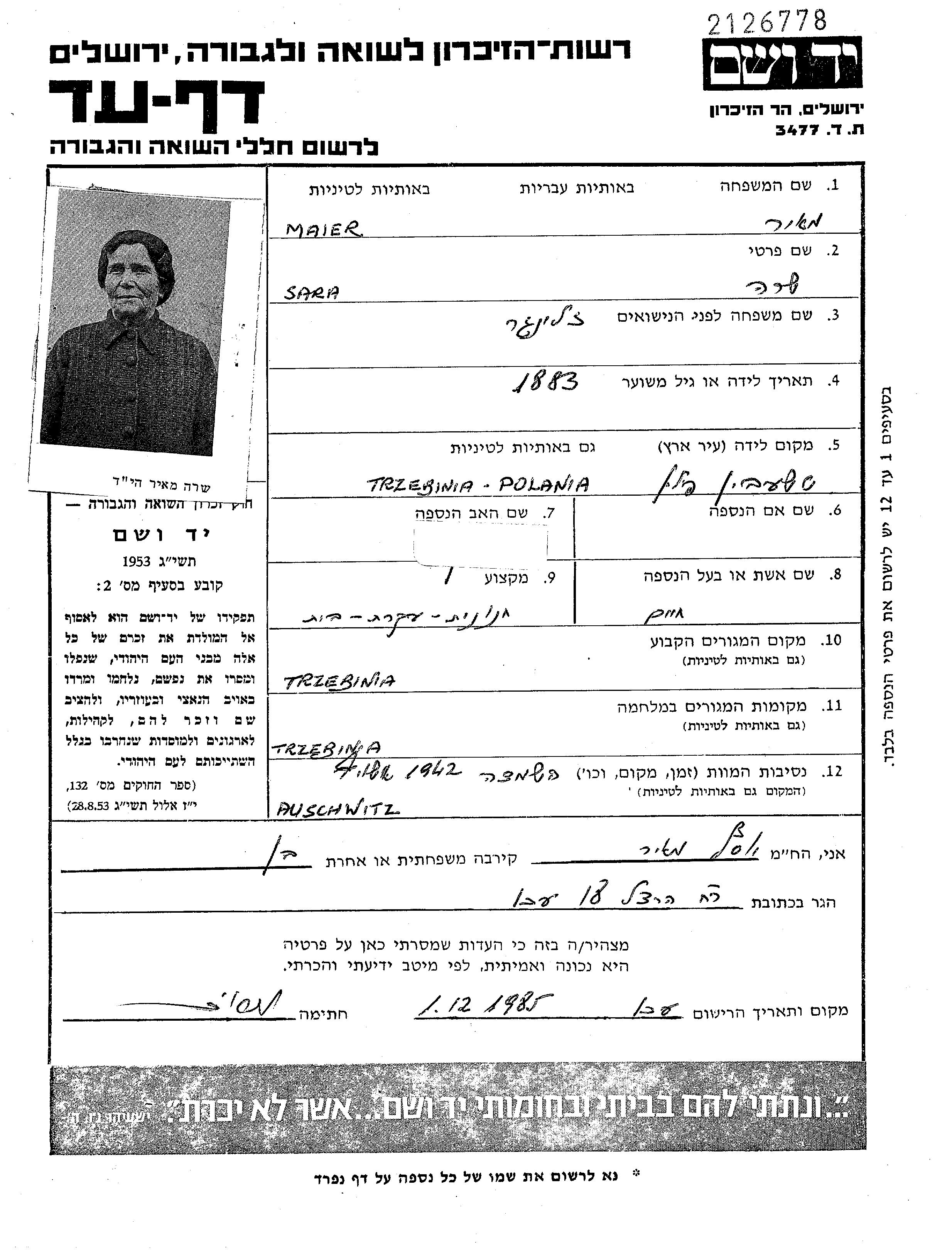 Recherche par date de la mort pendant la période de la Shoah: 1933-1945. Sélectionnez 'Exact'; dans la liste pour rechercher l'année exacte, ou sélectionner '+/- 2 ans'; ou '+/- 5 ans