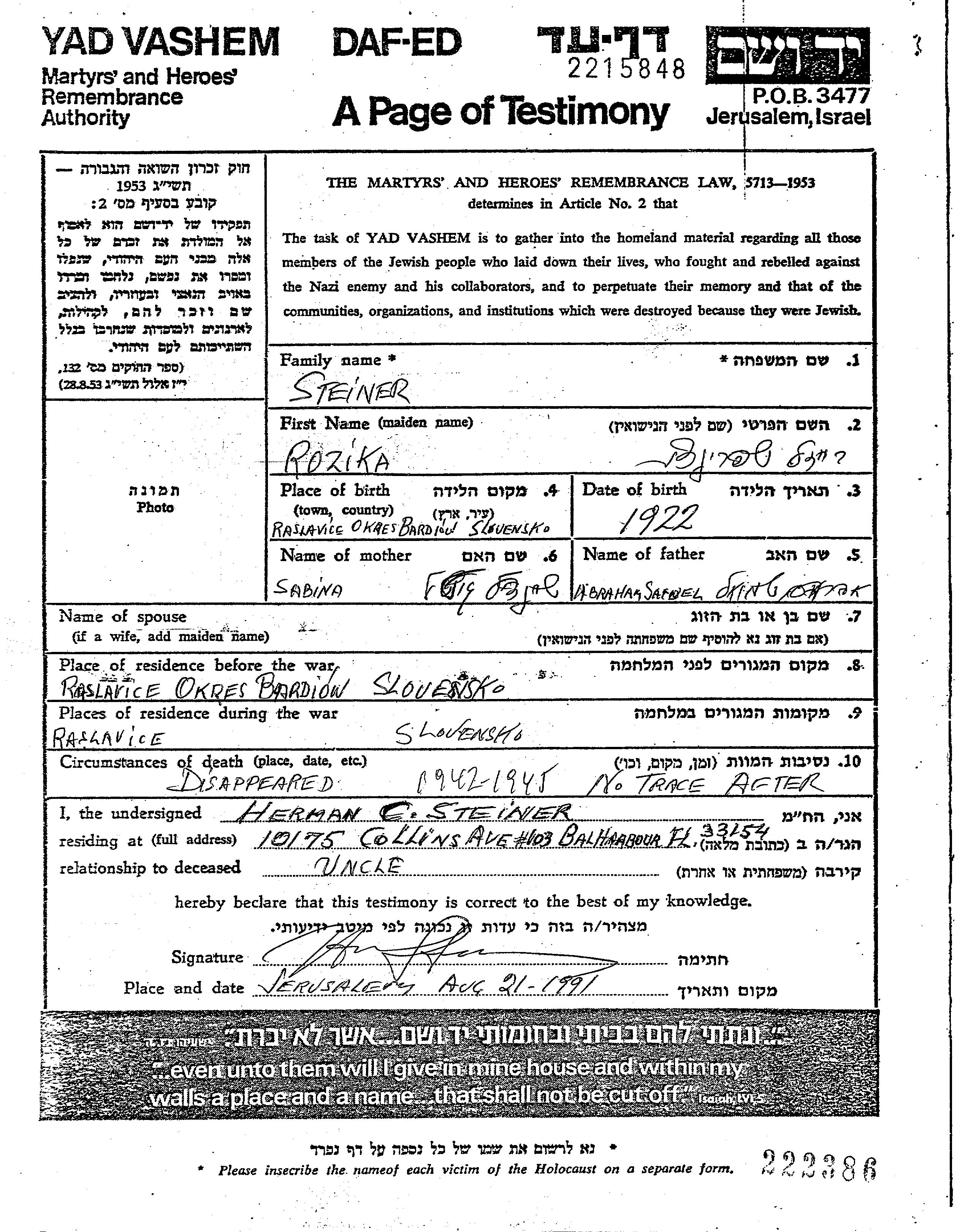 Yad Vashem - Pages of Testimony Names Memorial Collection