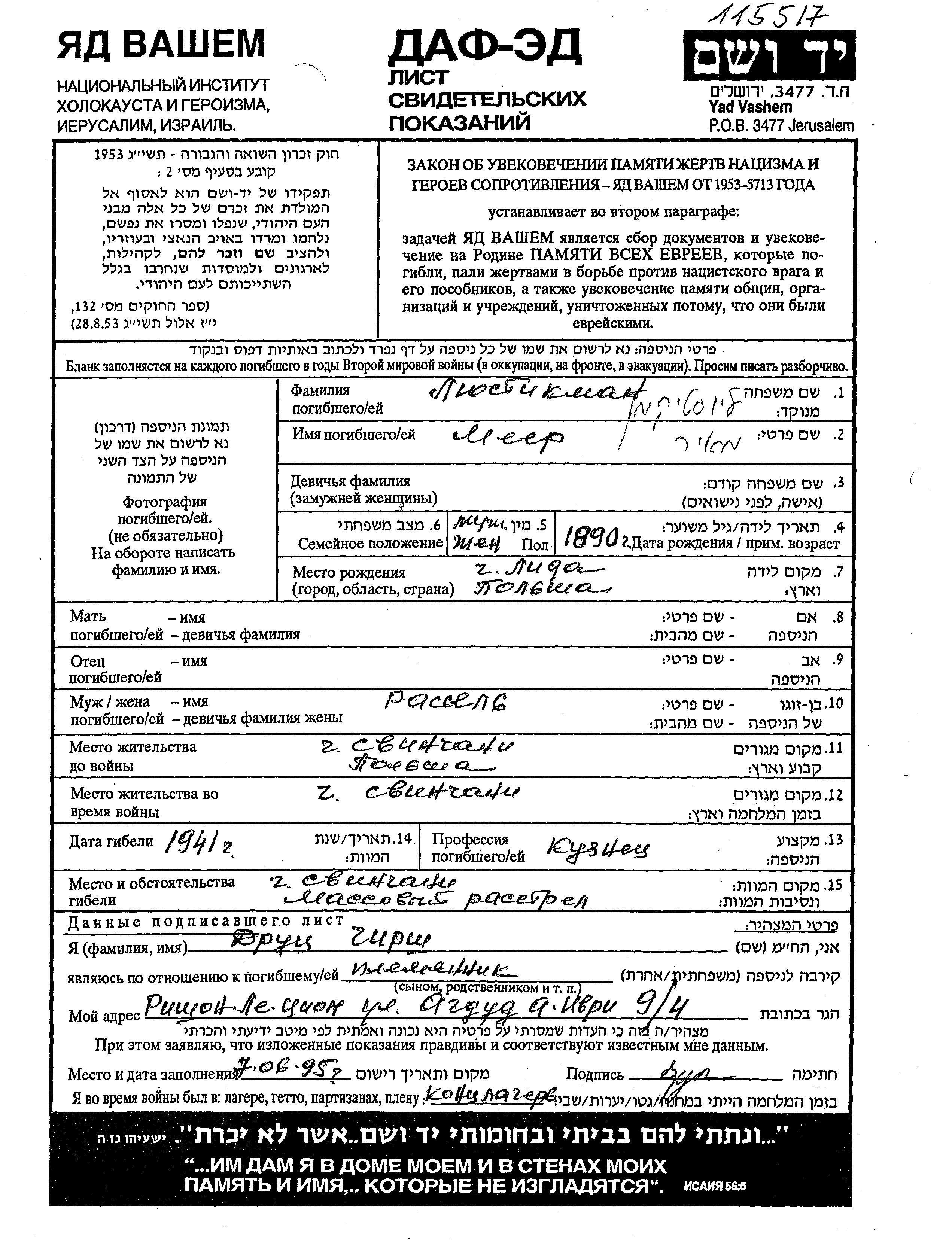 Yad Vashem - Pages of Testimony Names Memorial Collection