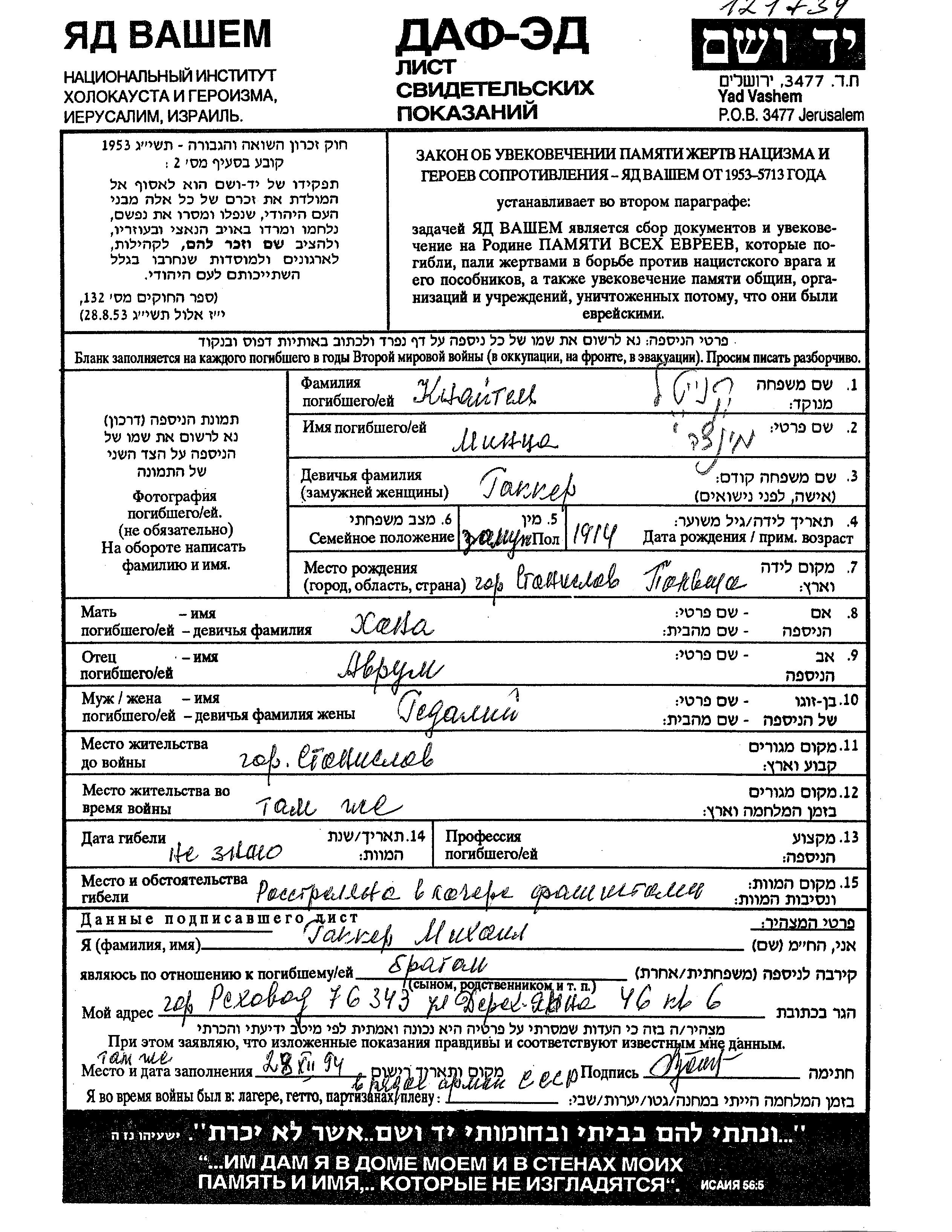 Yad Vashem - Pages of Testimony Names Memorial Collection