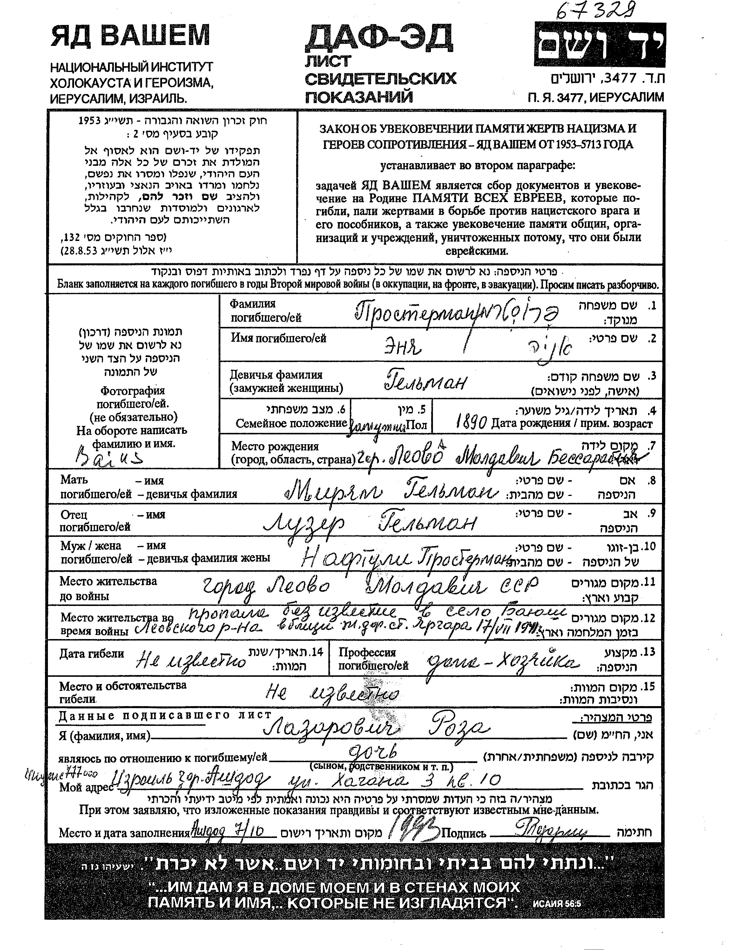 Yad Vashem - Pages of Testimony Names Memorial Collection