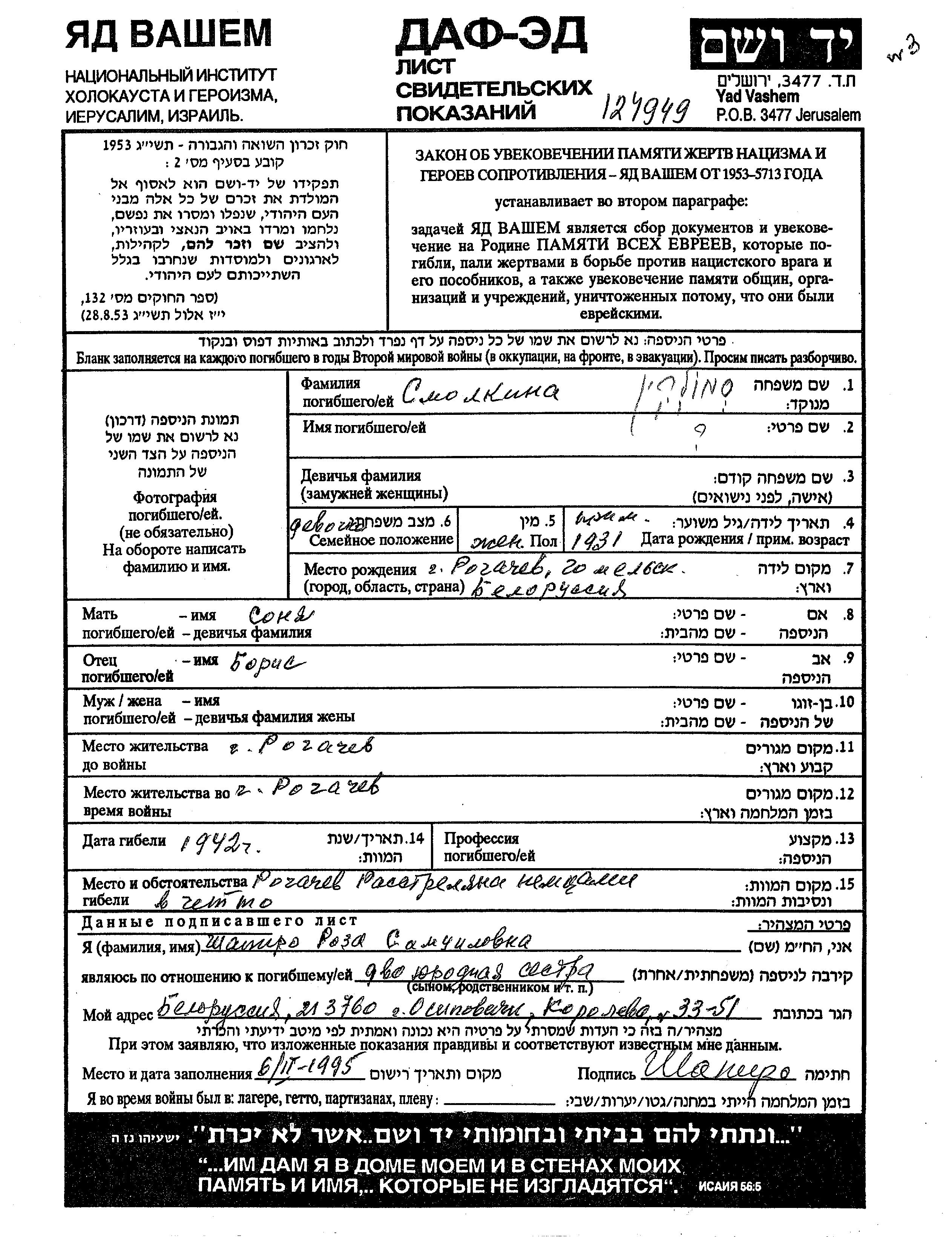 Yad Vashem - Pages of Testimony Names Memorial Collection