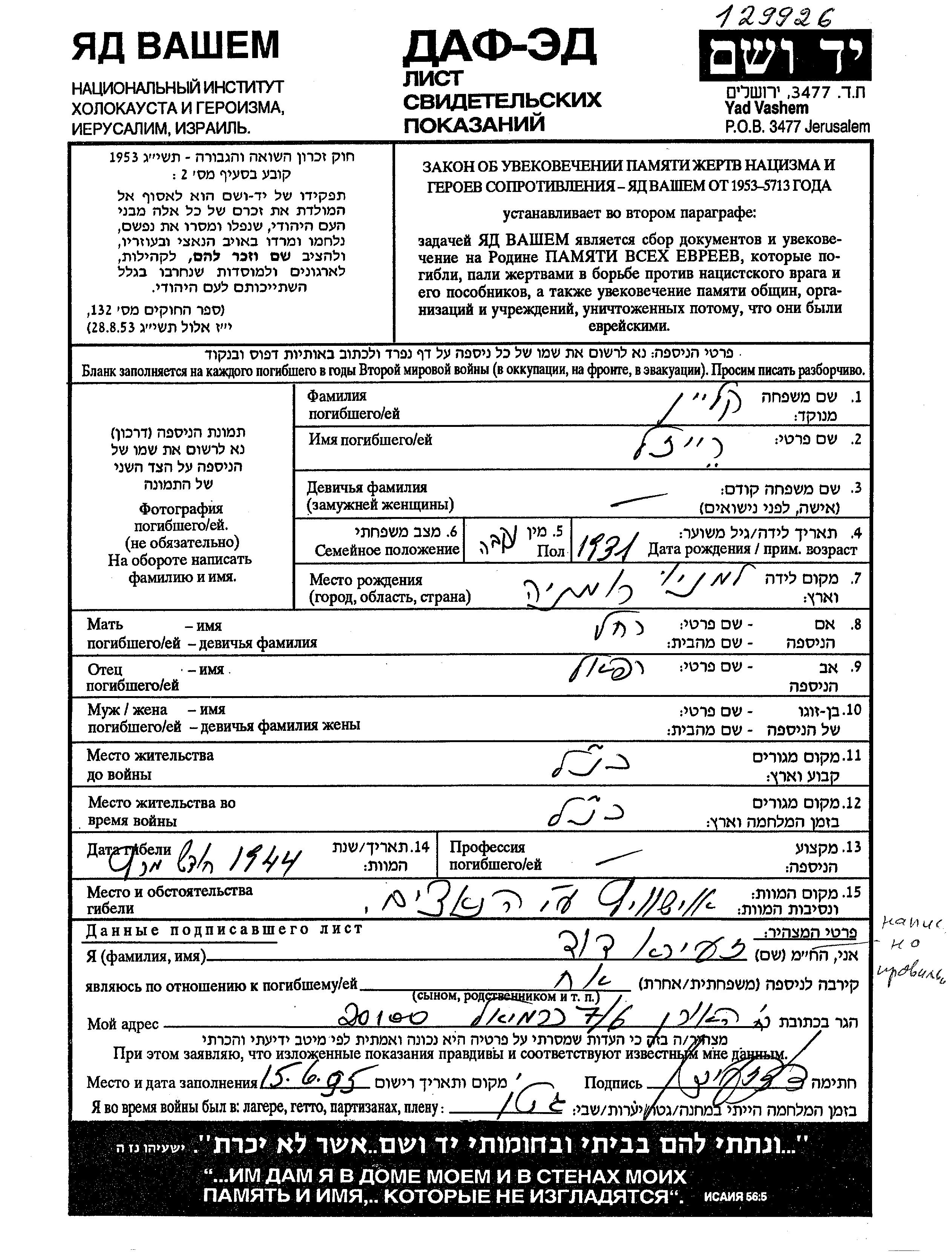 Yad Vashem - Pages of Testimony Names Memorial Collection