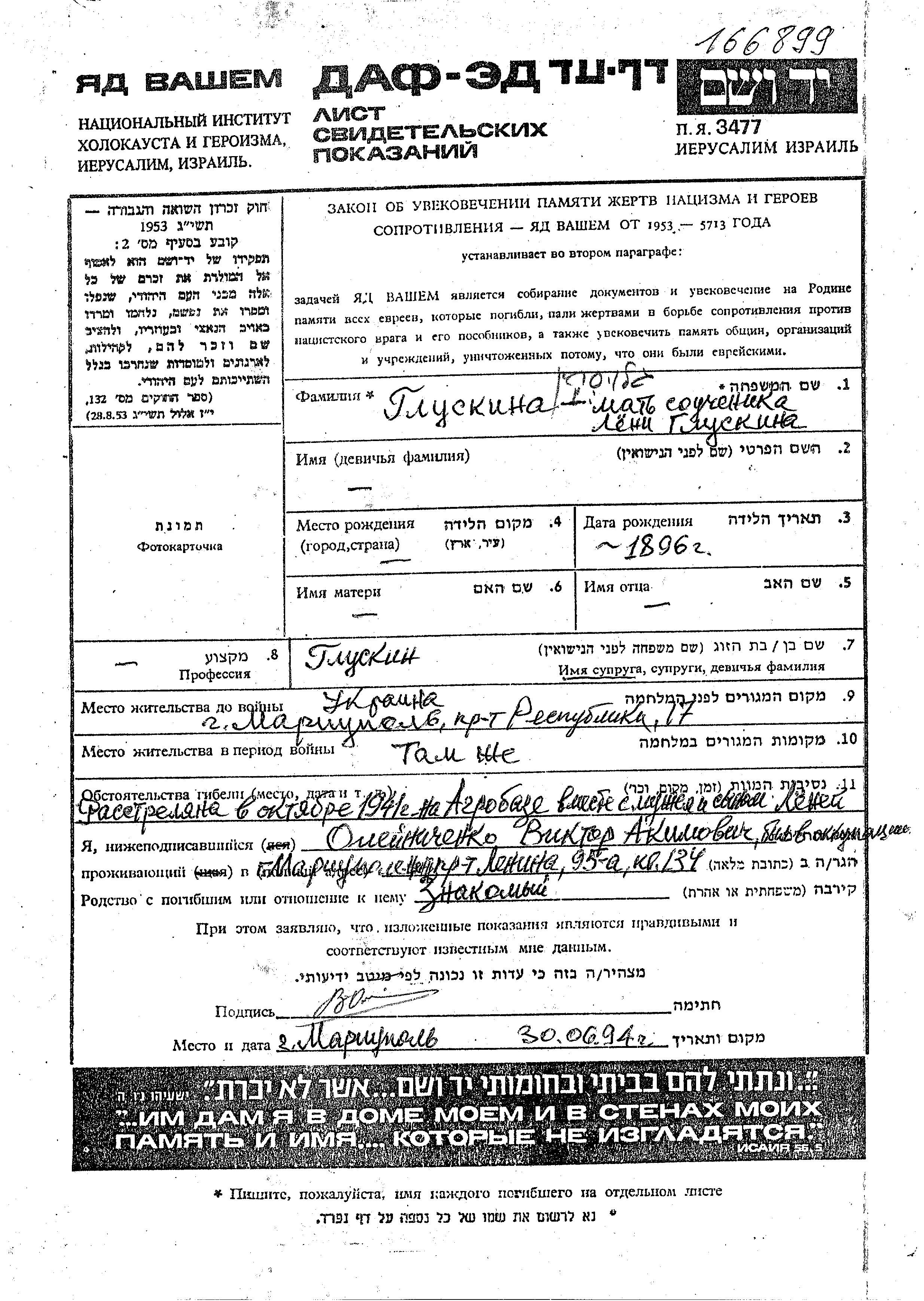 Au cours de la Shoah, les Juifs ont été assassinés de diverses façons : gazage, exécution par balle, immolation, noyade, enterrés vivants, épuisement par les travaux forcés, affamement, maladies et épidémies, privation de soins médicaux et de mesures de salubrité, etc. Certains Juifs ont mis fin à leur vie pour échapper à l'arrestation, aux persécutions ou aux souffrances permanentes et sans aucun espoir. Des dizaines de milliers de soldats juifs servant dans l’armée soviétique et capturés comme prisonniers de guerre furent sélectionnés comme juifs et assassinés. Beaucoup furent enregistrés comme «disparus au combat».