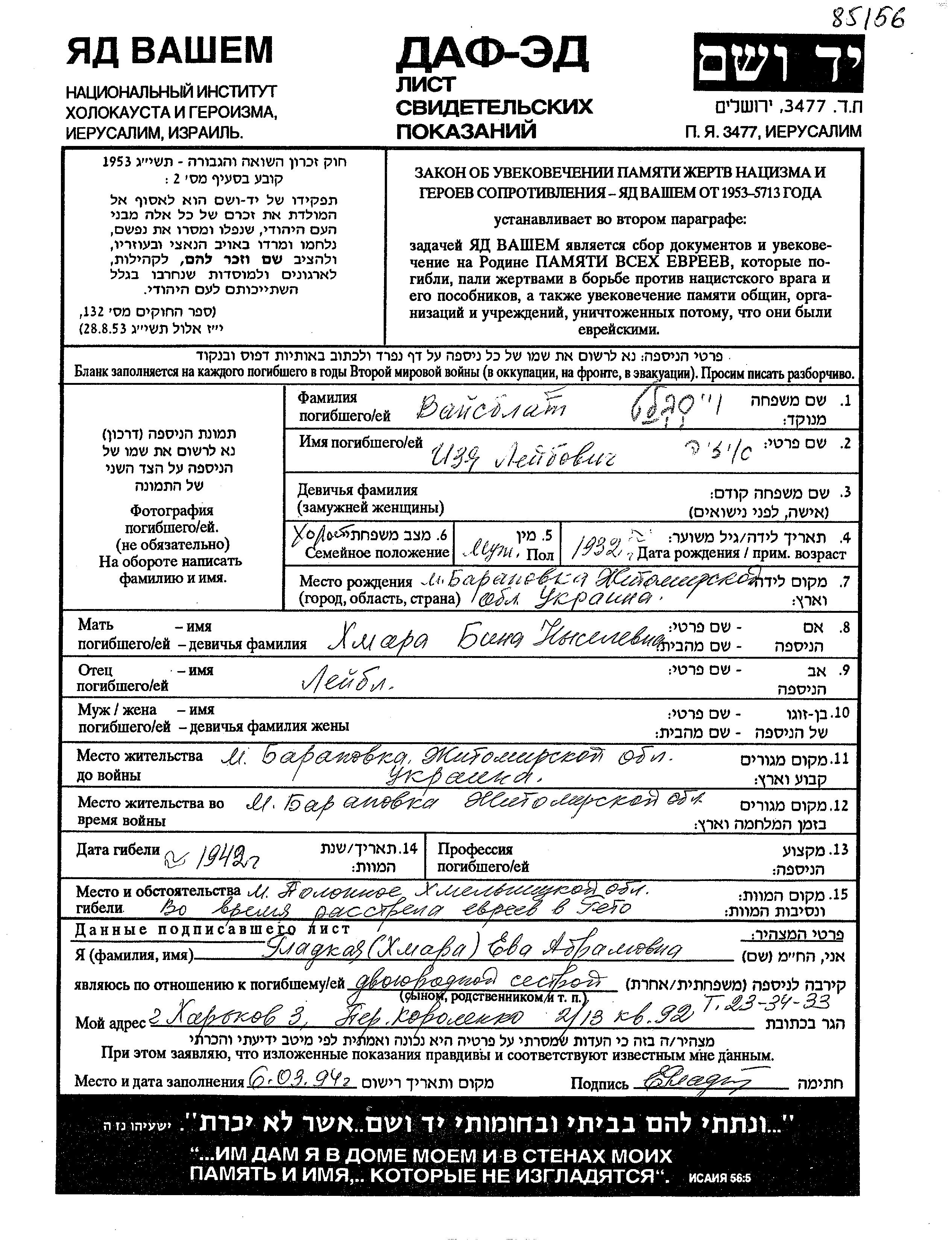 Au cours de la Shoah, les Juifs ont été assassinés de diverses façons : gazage, exécution par balle, immolation, noyade, enterrés vivants, épuisement par les travaux forcés, affamement, maladies et épidémies, privation de soins médicaux et de mesures de salubrité, etc. Certains Juifs ont mis fin à leur vie pour échapper à l'arrestation, aux persécutions ou aux souffrances permanentes et sans aucun espoir. Des dizaines de milliers de soldats juifs servant dans l’armée soviétique et capturés comme prisonniers de guerre furent sélectionnés comme juifs et assassinés. Beaucoup furent enregistrés comme «disparus au combat».