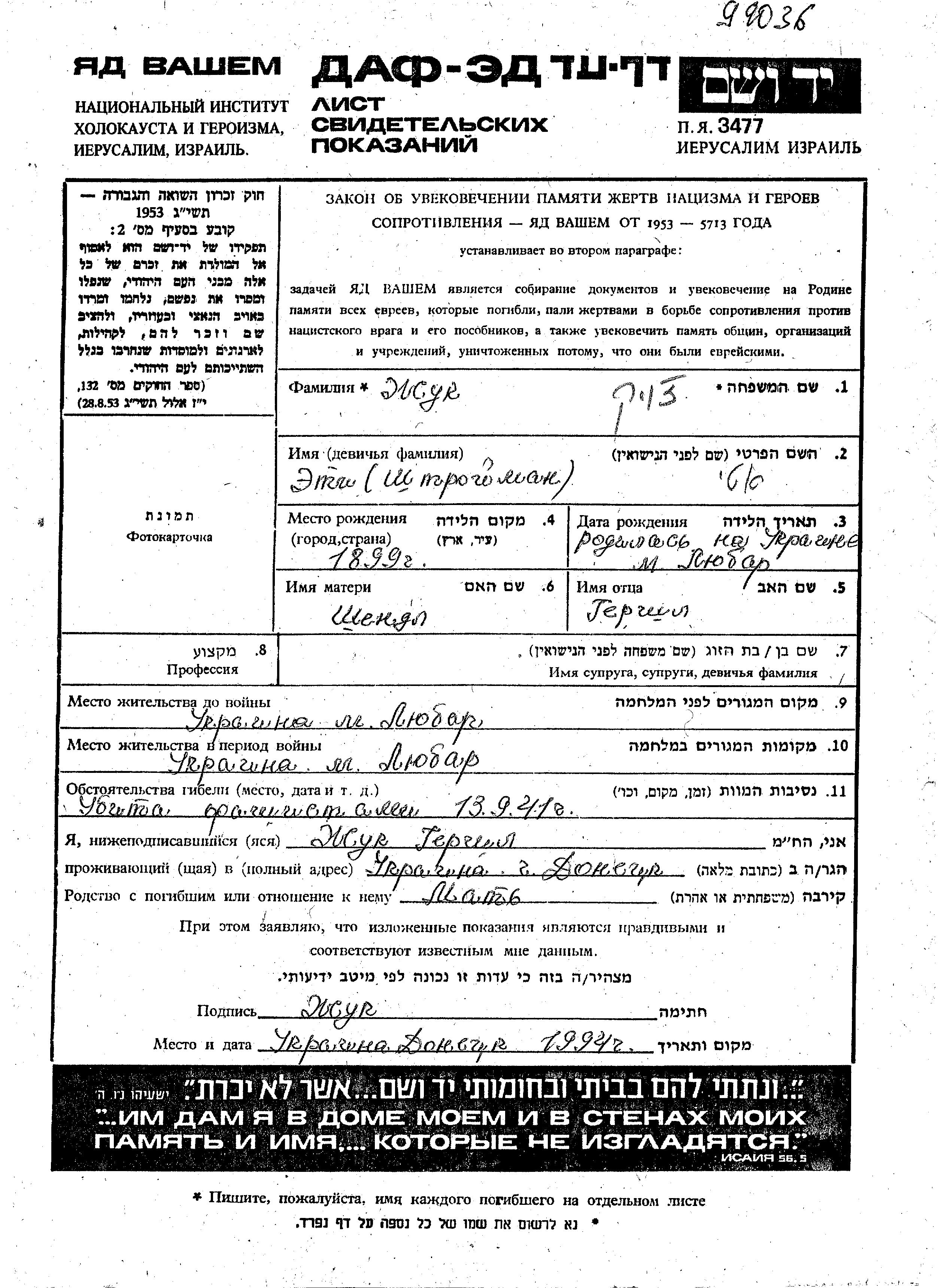 Yad Vashem - Pages of Testimony Names Memorial Collection