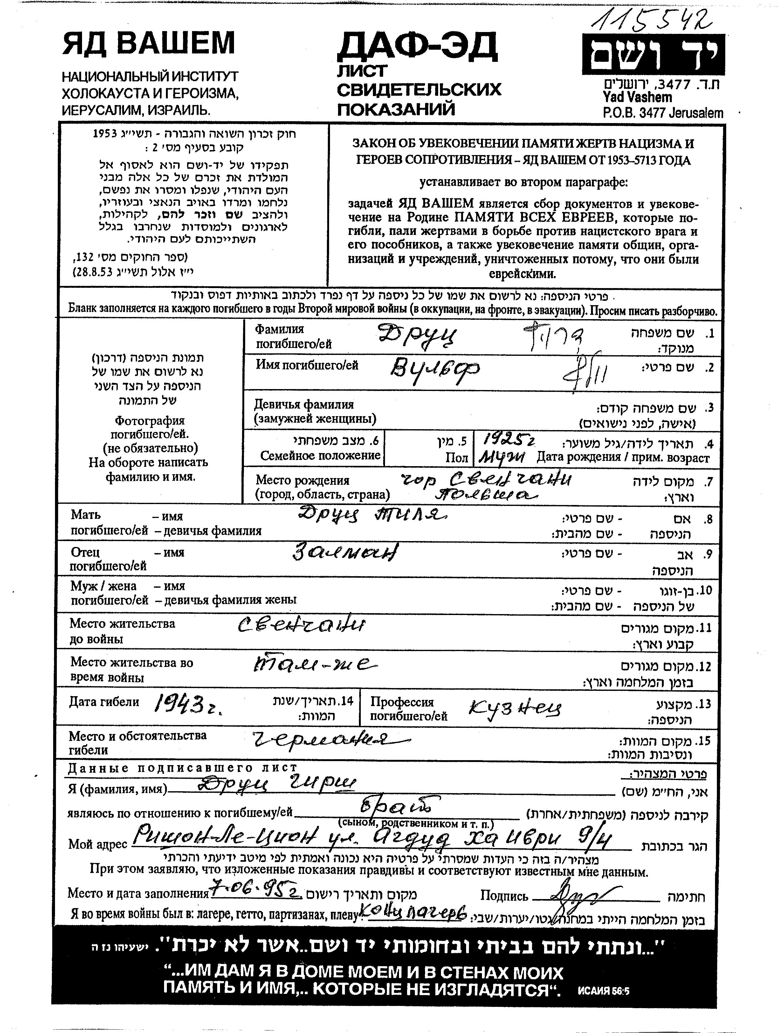 Yad Vashem - Pages of Testimony Names Memorial Collection