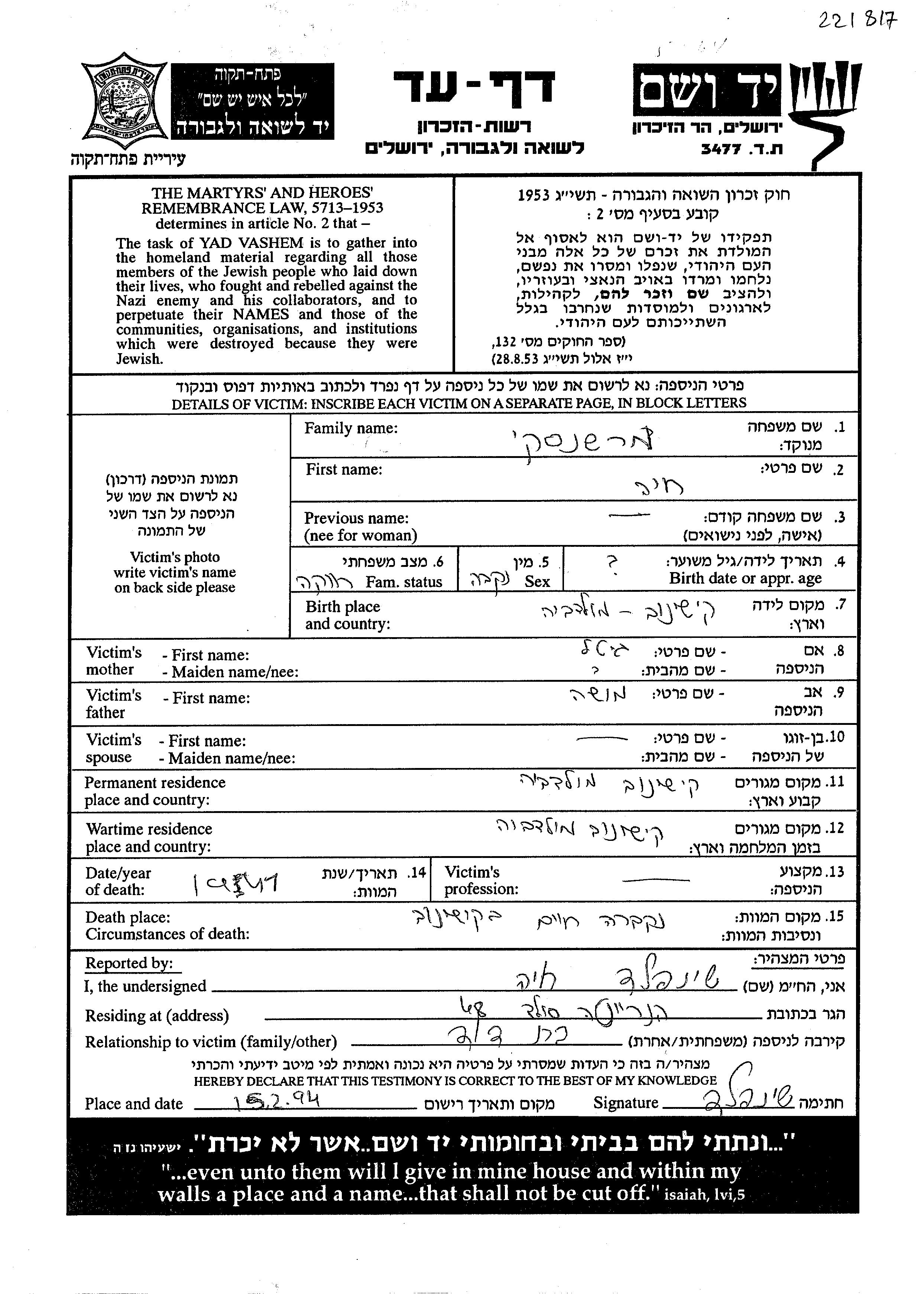 Yad Vashem - Pages of Testimony Names Memorial Collection