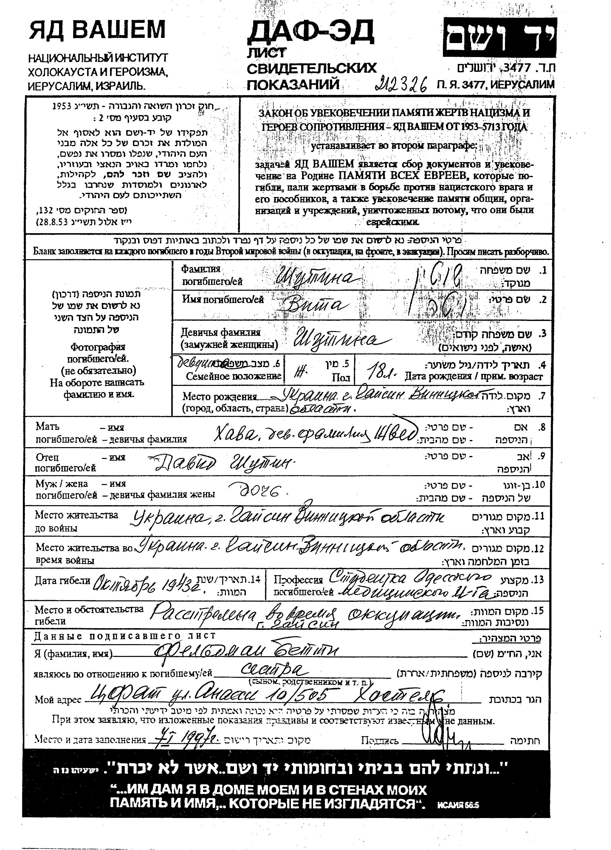 Yad Vashem - Pages of Testimony Names Memorial Collection