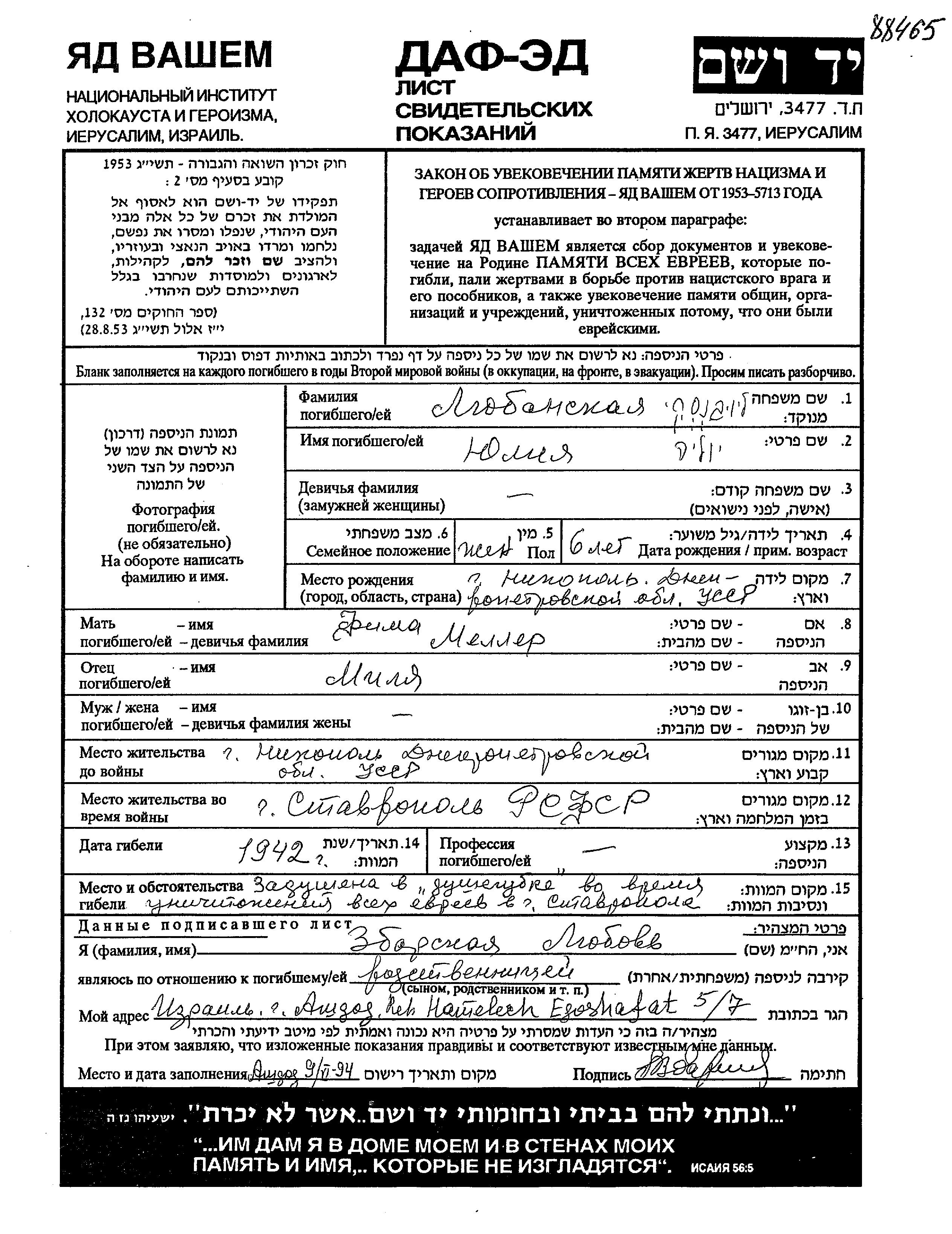 Yad Vashem - Pages of Testimony Names Memorial Collection