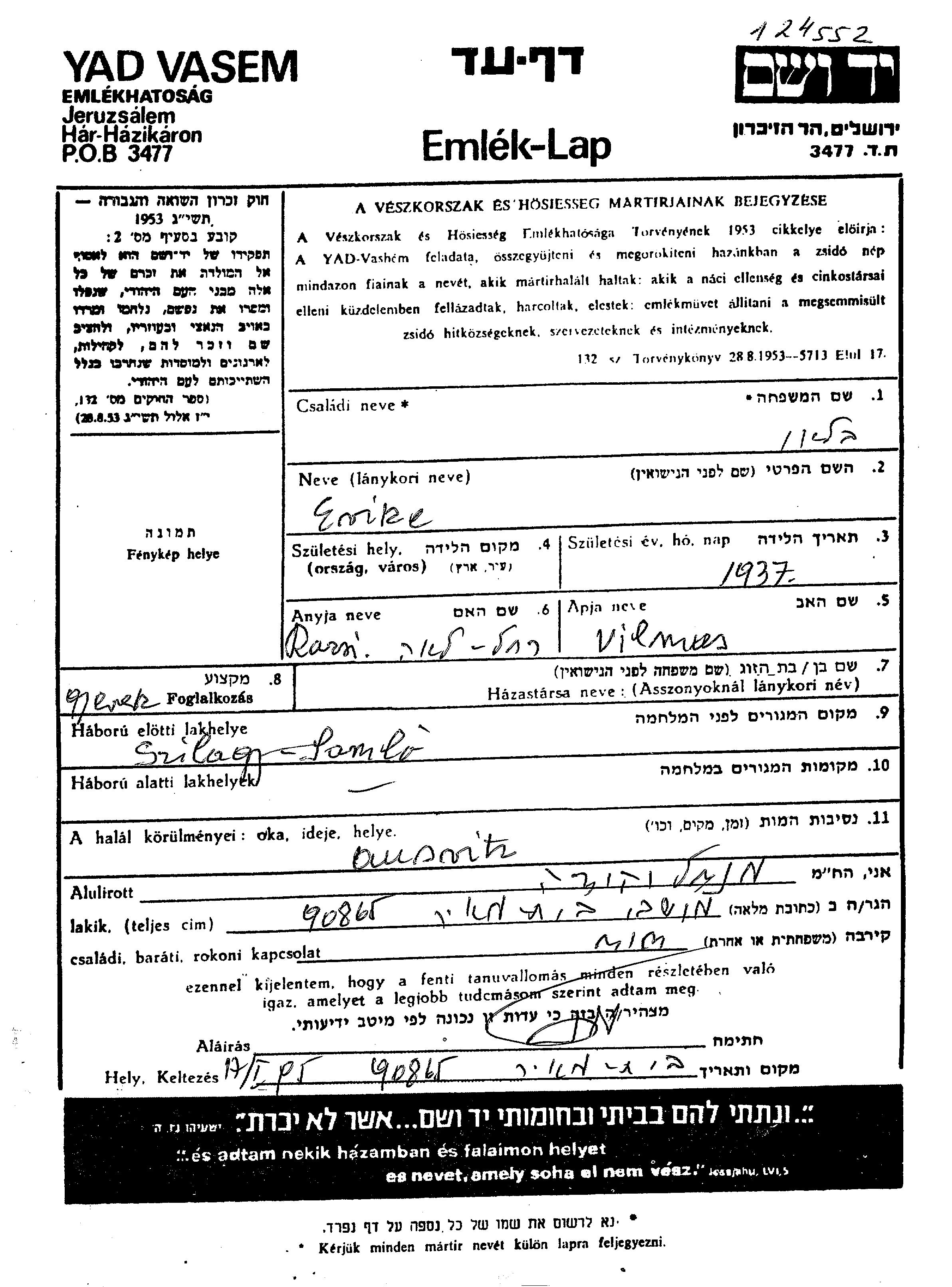 Yad Vashem - Pages of Testimony Names Memorial Collection