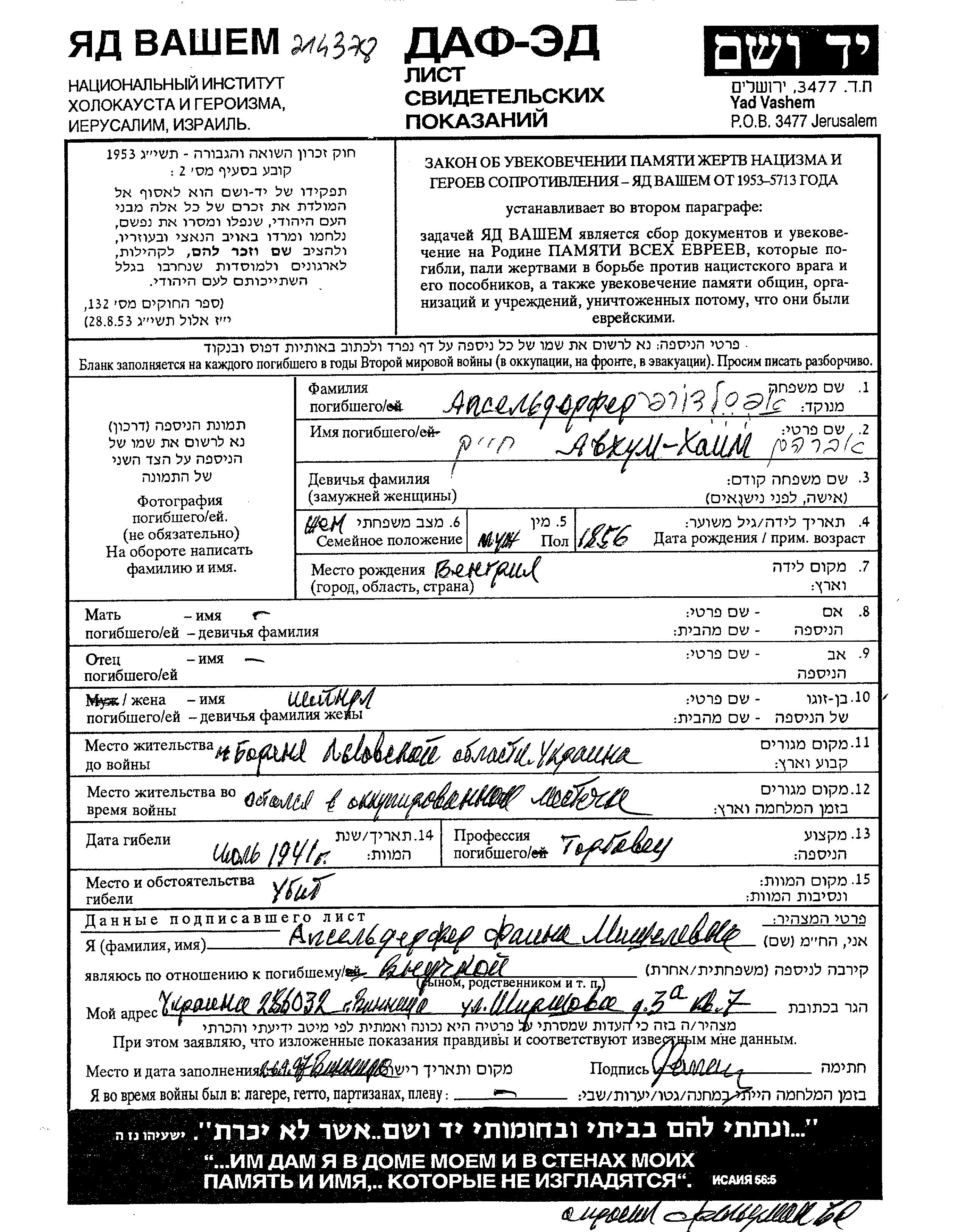 Yad Vashem - Pages of Testimony Names Memorial Collection