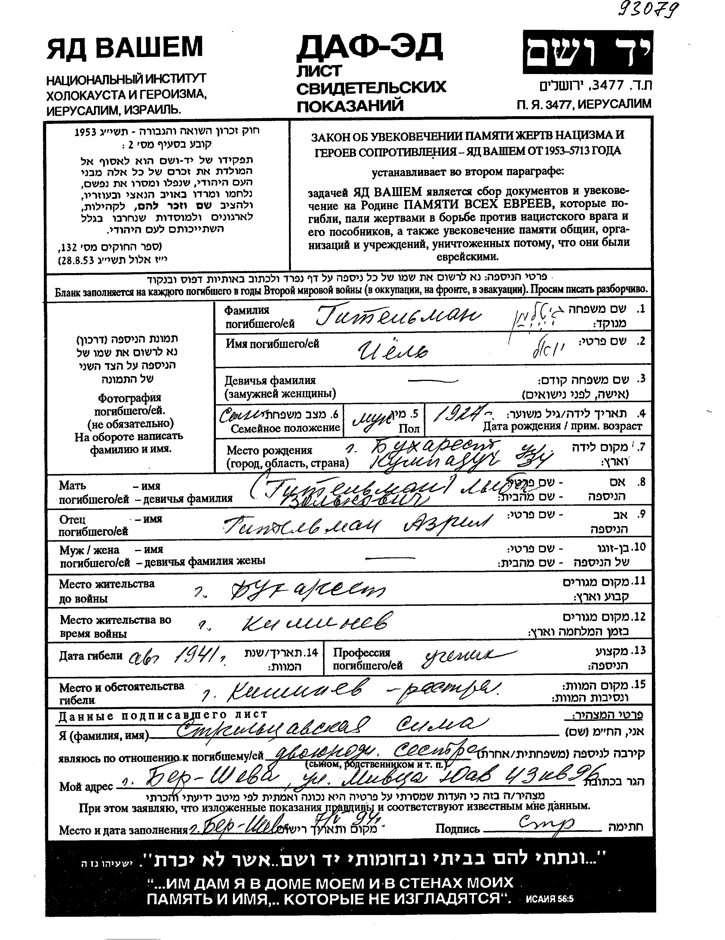 Yad Vashem - Pages of Testimony Names Memorial Collection