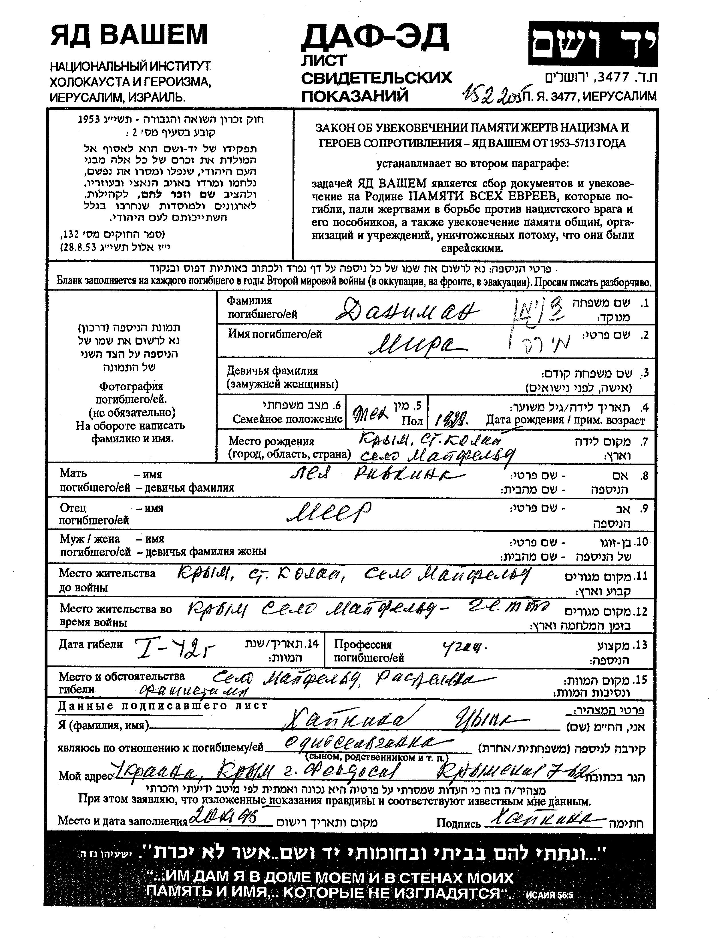 Yad Vashem - Pages of Testimony Names Memorial Collection