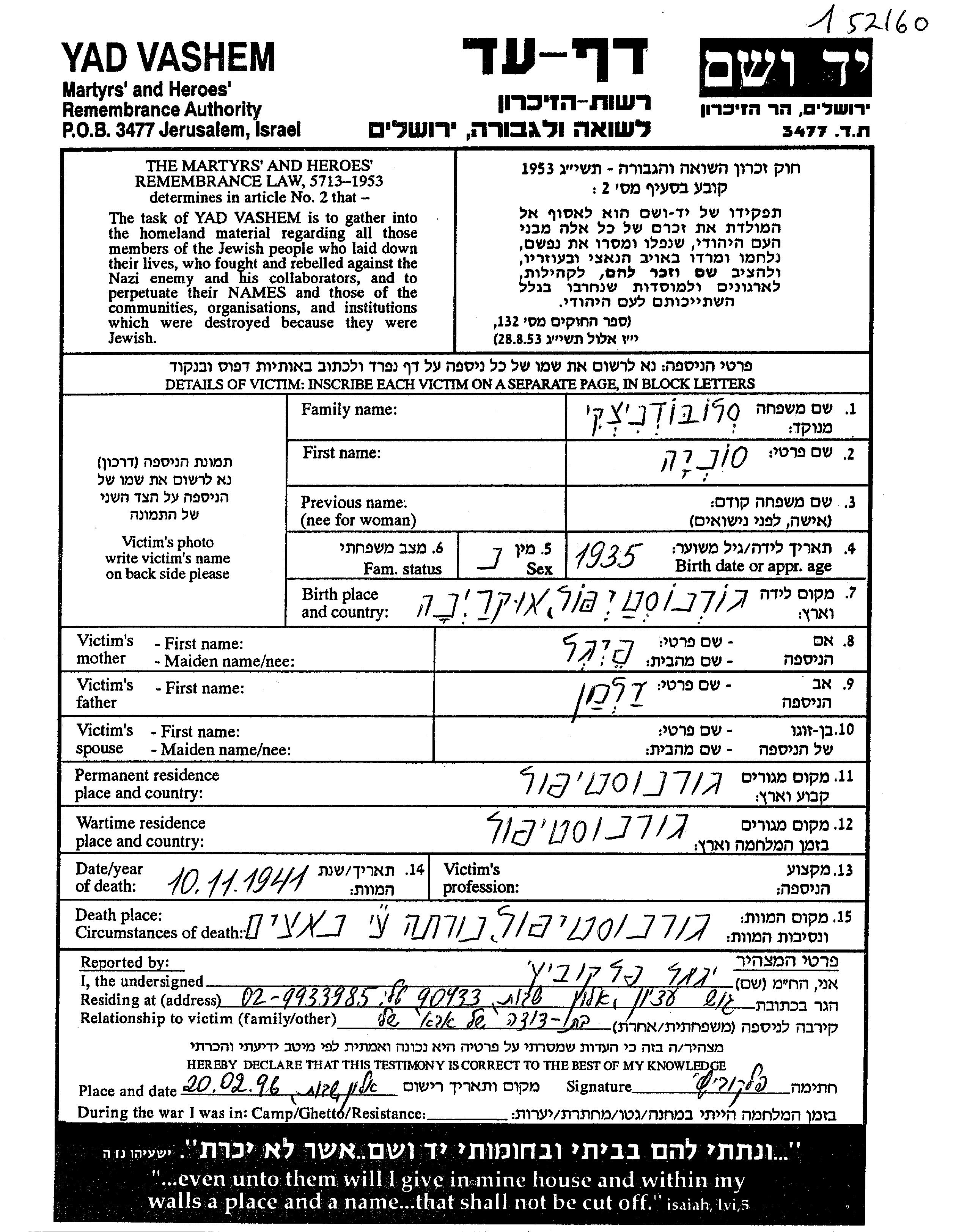 Yad Vashem - Pages of Testimony Names Memorial Collection