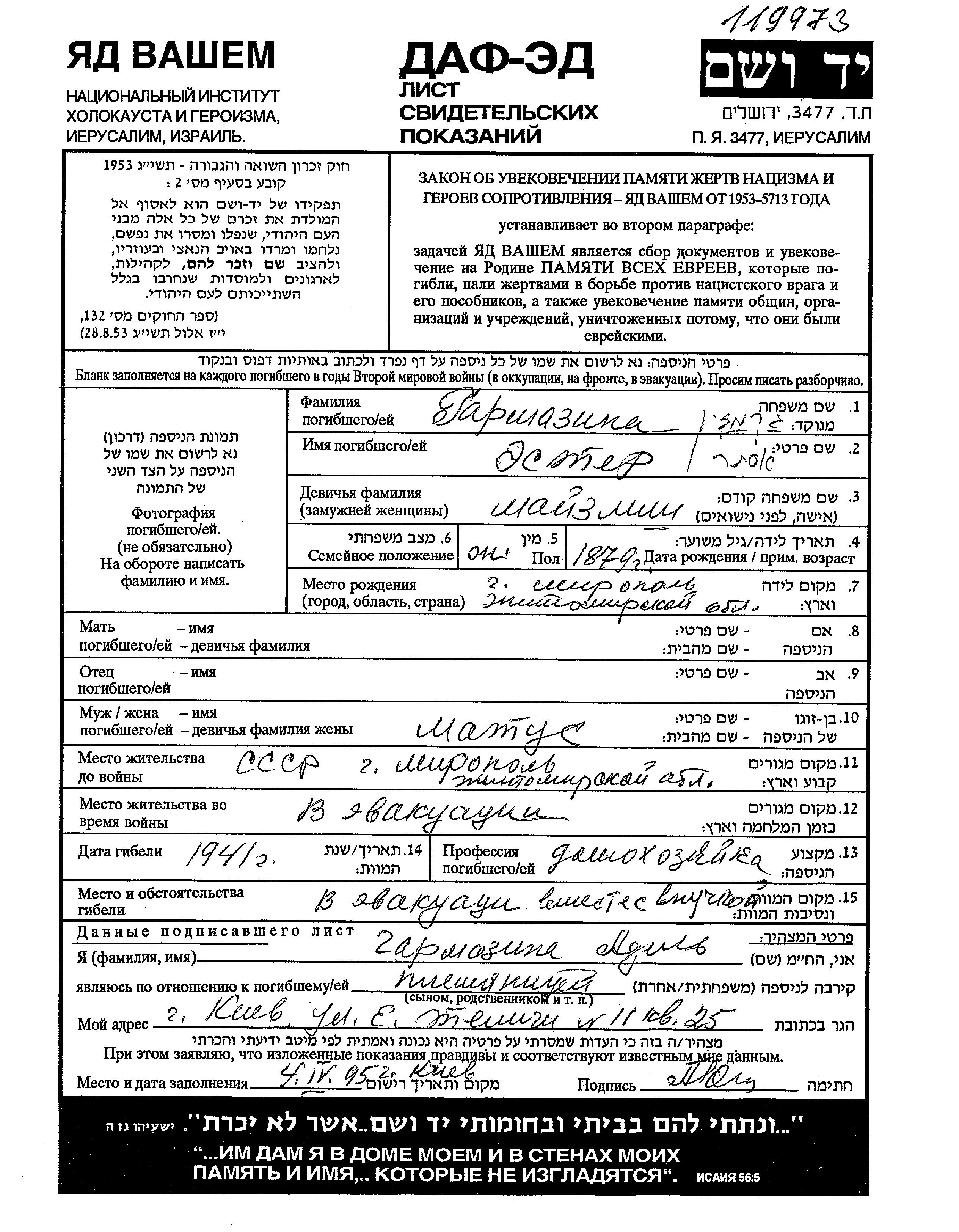 Yad Vashem - Pages of Testimony Names Memorial Collection
